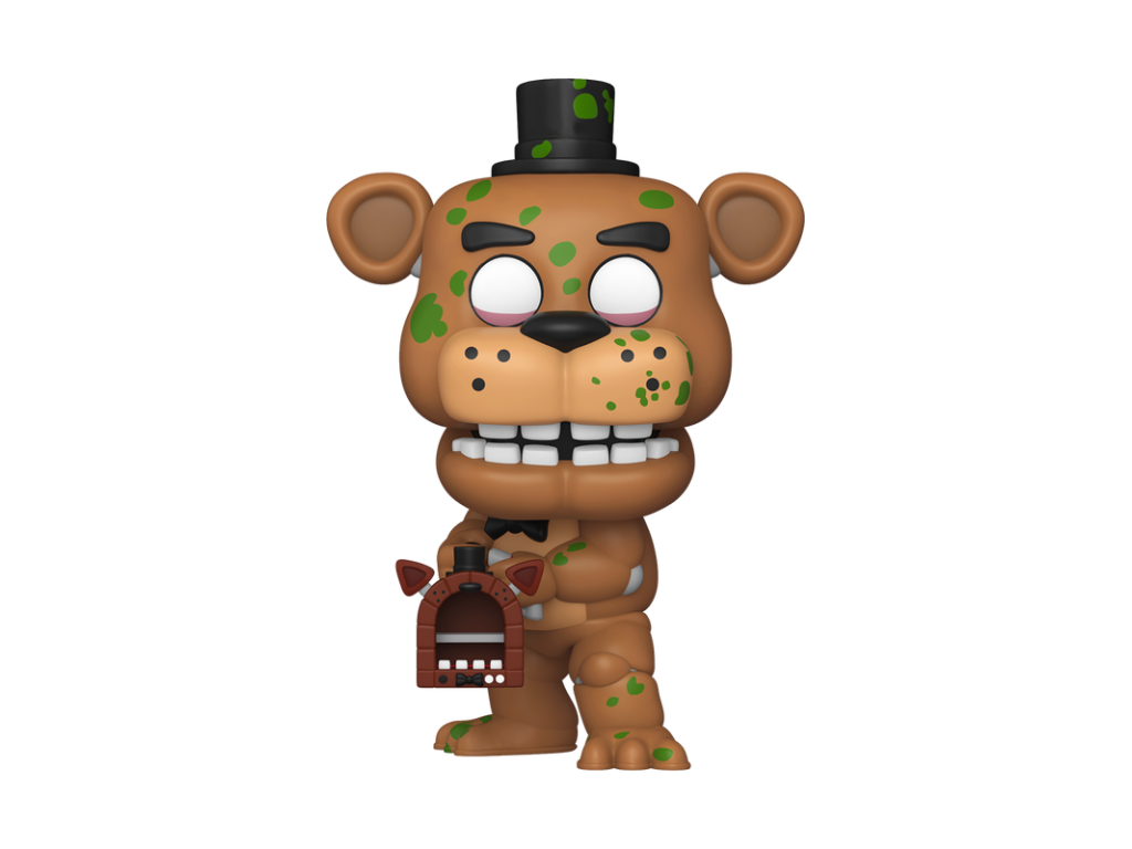 Hivatalos engedéllyel rendelkező Funko POP! vinyl figura, amely Freddy Fazbear animatronikus karakterét ábrázolja, egy kis pizzakilövővel felszerelve - egy menő kiegészítő a gyűjtők és a Five Nights at Freddy's játéksorozat rajongói számára.