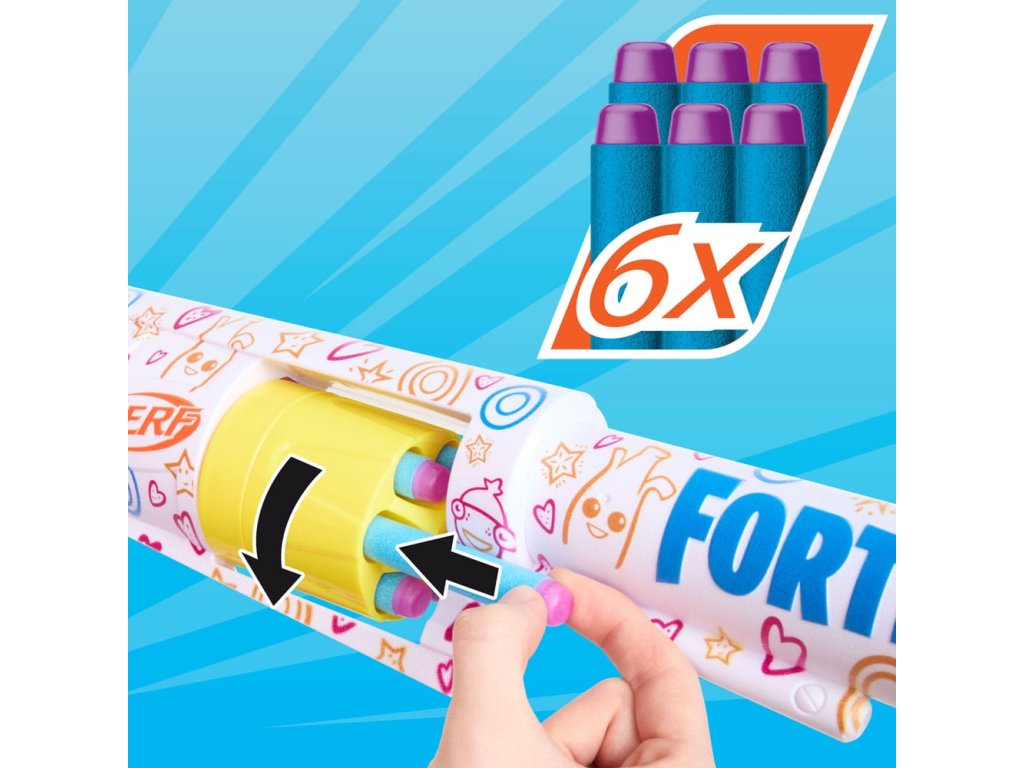 A Nerf Fortnite Frenz 4 Ever blastert a Fortnite-ban használt felszerelések ihlették. A népszerű videojátékból ismert Frenz 4 Ever fegyvertekercs dizájnját tartalmazza, és a Fishstick, Peely, Meowscles és Cuddle Team Leader karaktereket. A blaster tartalmaz egy bónuszkódot, amellyel feloldhatod a Frenz 4 Ever Wrap-et a videojátékban, hogy személyre szabhasd a felszerelésedet!* A Nerf blaster 6 darts kapacitású forgó dobot tartalmaz, és 6 habszivaccsal töltött Nerf Elite dartsot tartalmaz. A Hasbro Fortnite blaster színes burkolattal, kalapácsos töltésakcióval és menő forgó dobdal hívja fel magára az ellenfelek figyelmét, amikor Nerf-csatákba szállsz be. A Nerf habdárdák tökéletesek a beltéri és kültéri csatákhoz, és tesztelték és jóváhagyták a teljesítményt és a minőséget. A Frenz 4 Ever Blaster tökéletes ajándék a Fortnite rajongóknak, és remek kiegészítője a Nerf-gyűjteményeknek játékra és bemutatásra. A védőszemüveg ajánlott (nem tartozék). Elemek nem szükségesek.Kiegészítő paraméterek
