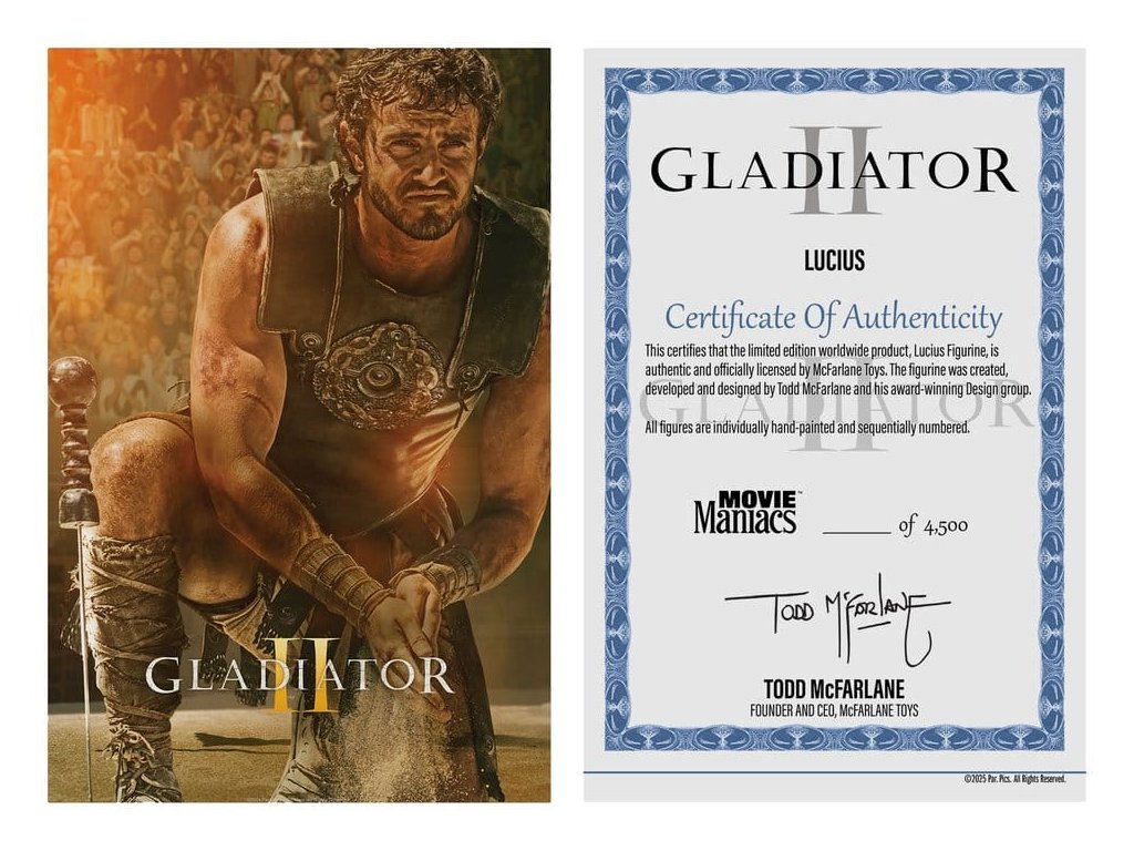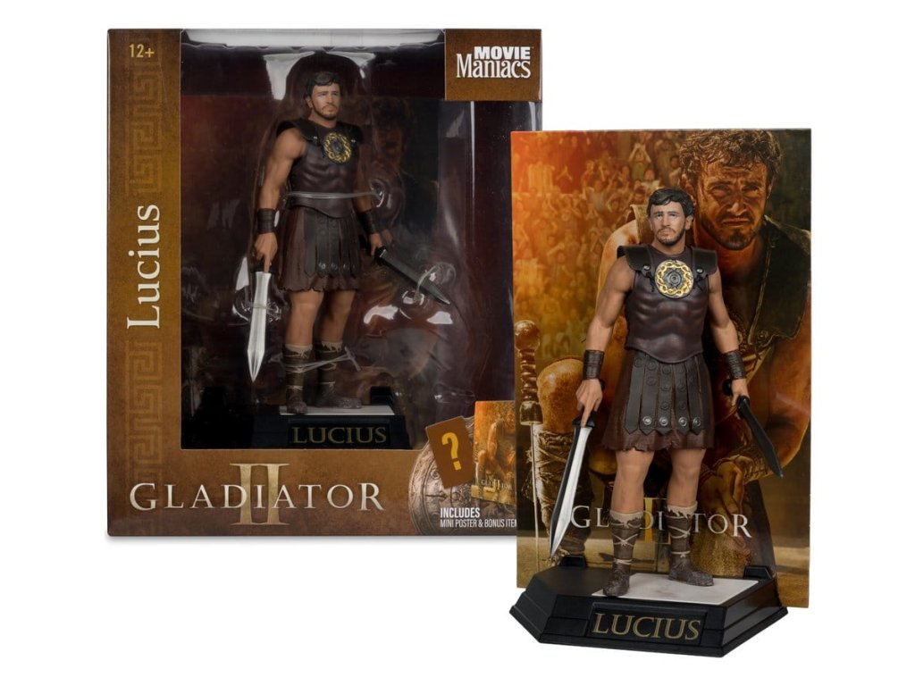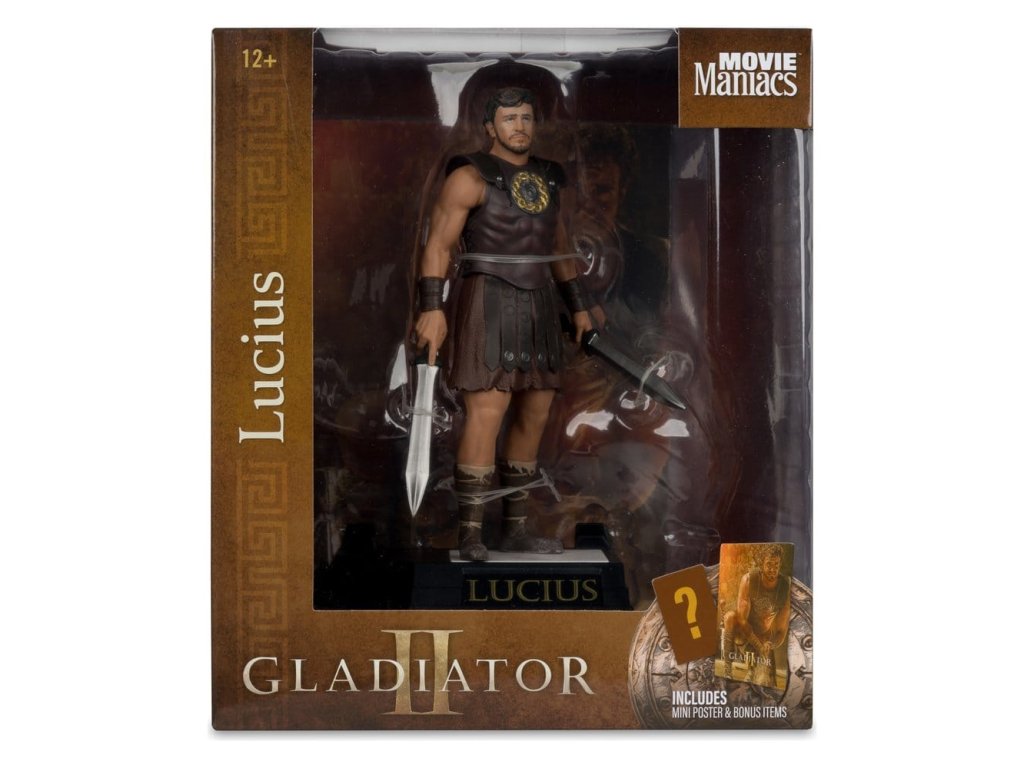 Évekkel Maximus halála után Lucius kénytelen belépni a kolosszeumba, miután hazáját a zsarnoki római ikercsászárok meghódítják. A birodalom jövője a térdén hever, neki kell megtalálnia az erőt és a becsületet, hogy visszaadja Róma dicsőségét a népének - Hihetetlenül részletes, limitált kiadású, 6"-es méretarányú figura - Tartalmazza a festői, nyomtatott hátteret és környezetet a megjelenítéshez - Tartalmazza a művészeti kártyát, számozott eredetiségigazolással és kártyatartóval - Rejtett meglepetés - Gyűjtsd össze az összes Movie Maniacs figurát a McFarlane Toys-tól. Előzetes megjelenési dátum: 2026. februárKiegészítő paraméterek