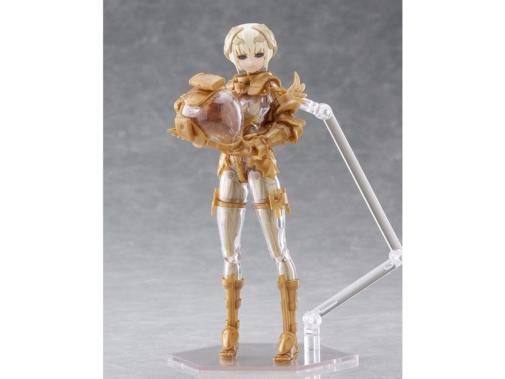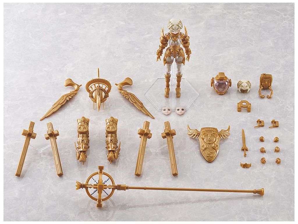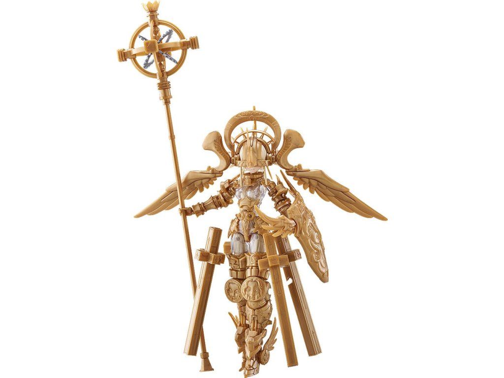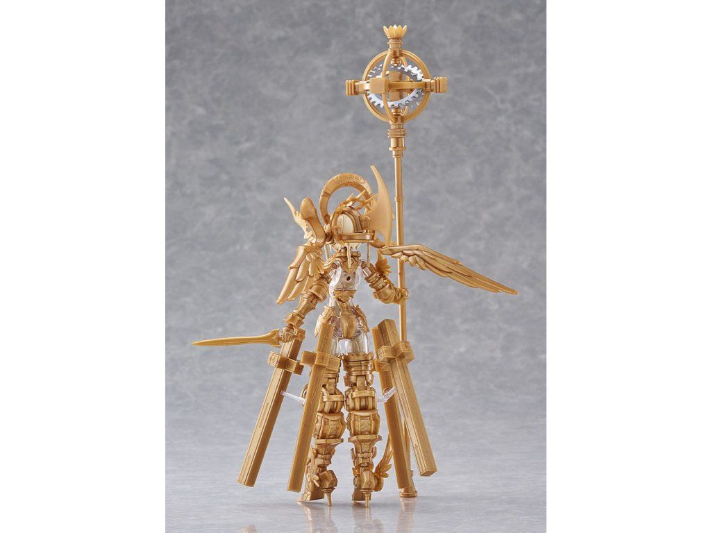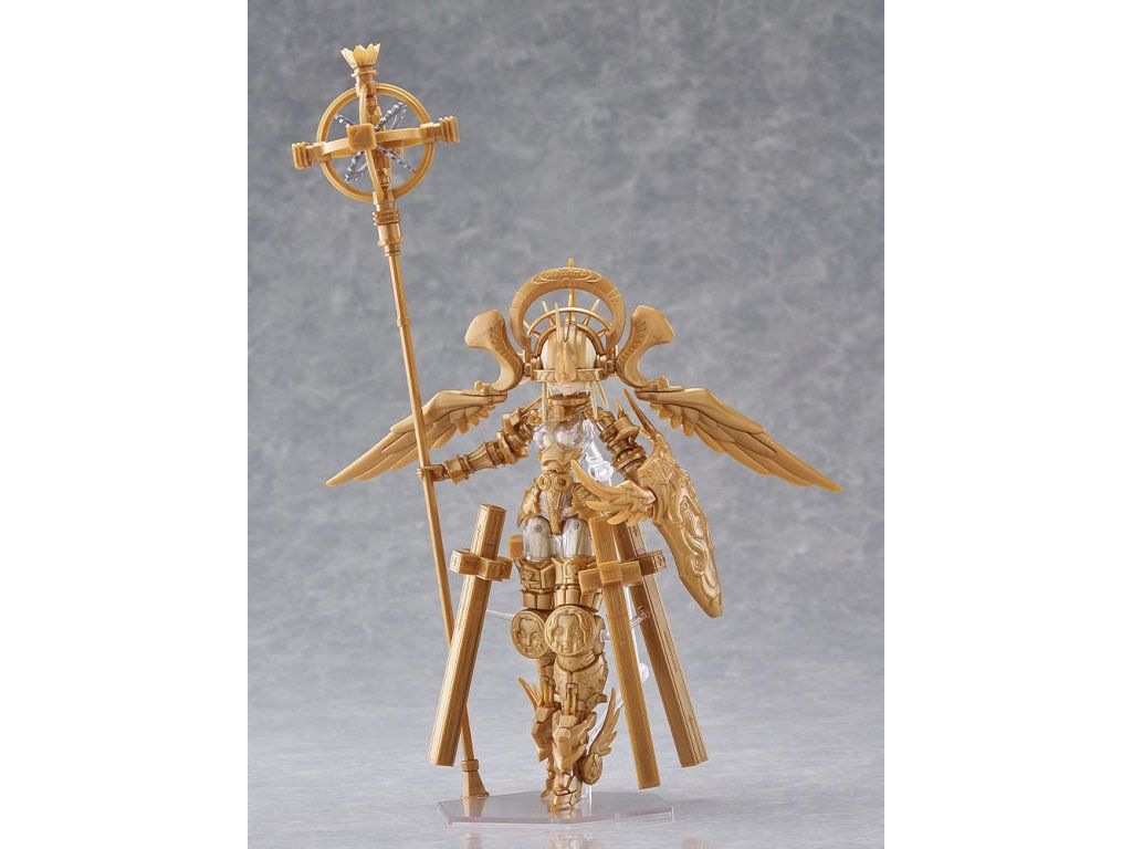 Bemutatjuk az OVERLORD Gabriel-t, az ötödik modellt az Akiman x Max Factory "GODZ ORDER" nevű műanyag modellkészletéből! A modell az Akiman eredeti tervén alapul, és a Max Factory gondosan megmunkálta modellformába. A modellhez három előre festett arclemez tartozik (standard arc, elszánt arc és megvetett arc). A készlet tartalmaz továbbá egy festetlen arctáblát és szemdekálokat is. A standard változat kétféle aranysugárra osztott alkatrészeket tartalmaz. A DX-változathoz képest a modell átlátszó, színtelen testet tartalmaz, arany kerettel. A figura azt az isteni alakot képviseli, aki megalapította és uralja Olympus kozmikus városállamát, és egyben a GODWING CELESTIAL KNIGHTS ellensége is. A modell fegyverek nélkül és űrruhás állapotban is megjeleníthető. A kb. 300 mm hosszú bot egyedi égi dizájnnal és részletesen kidolgozott részekkel rendelkezik. A választható alkatrészek közé tartozik a pajzs, a kard, az űrsisak és két vezérlő. A kézrészek rugalmas PVC-ből készültek. Tartalmaz egy csuklós állványt is, amellyel a modellt különböző pozíciókban lehet bemutatni.