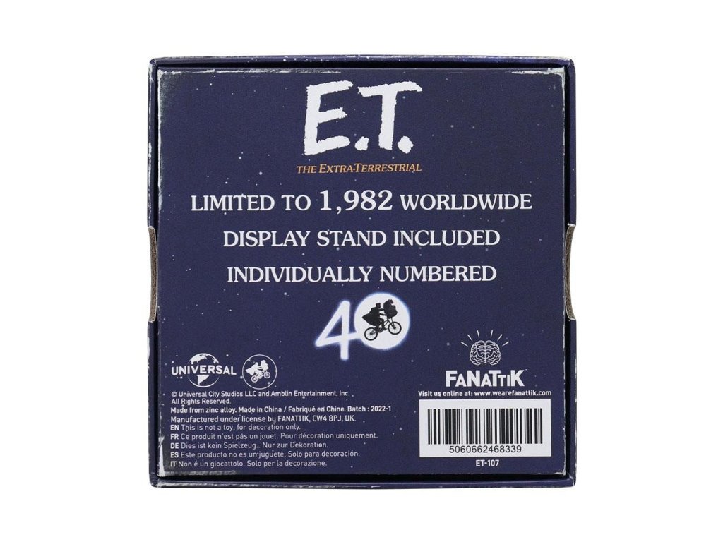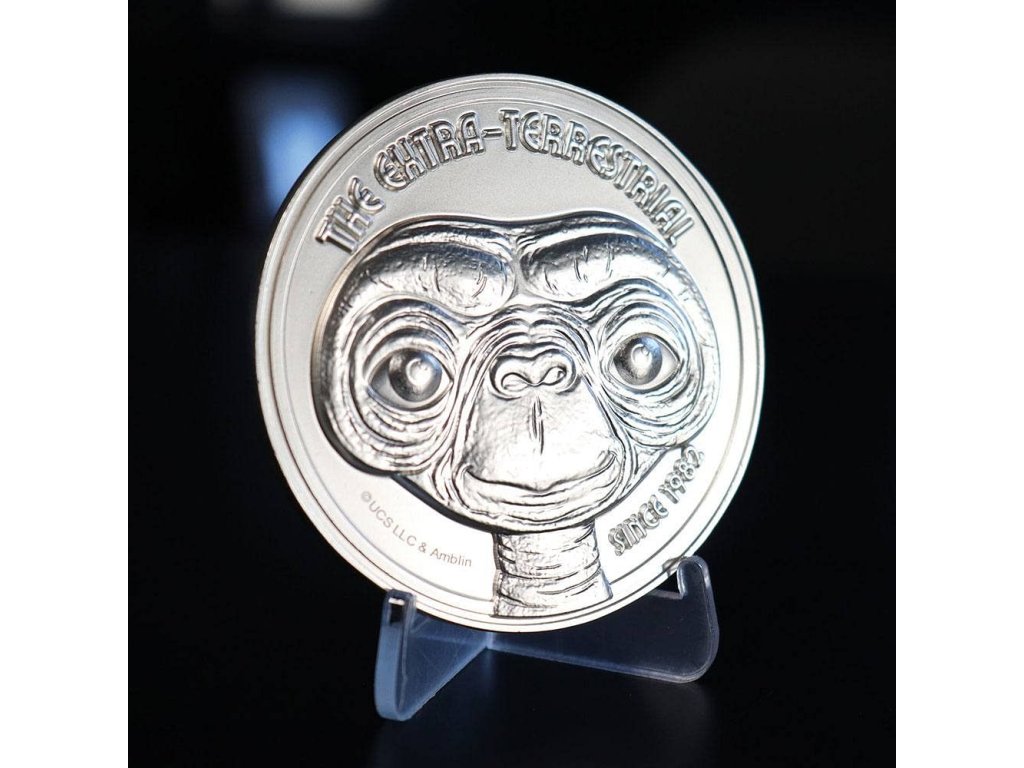 Gyűjtői érme az E.T. című kultikus sci-fi film 40. évfordulójára. Steven Spielberg E.T. the Extra-Terrestrial című filmje bármely gyűjteményben jól mutat. A műanyag állványt is tartalmazó, 1 982 darabos, korlátozott példányszámú kiadás.
