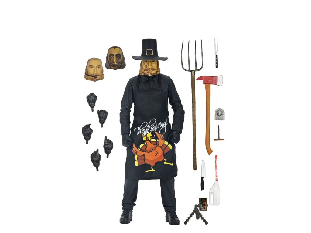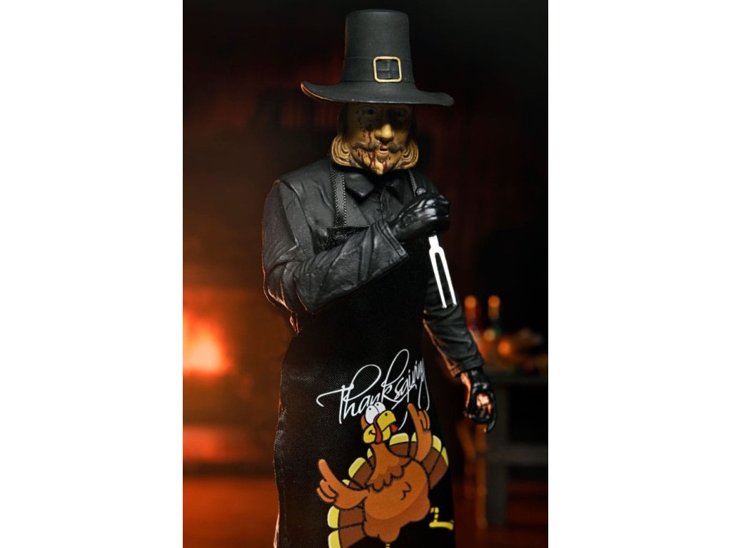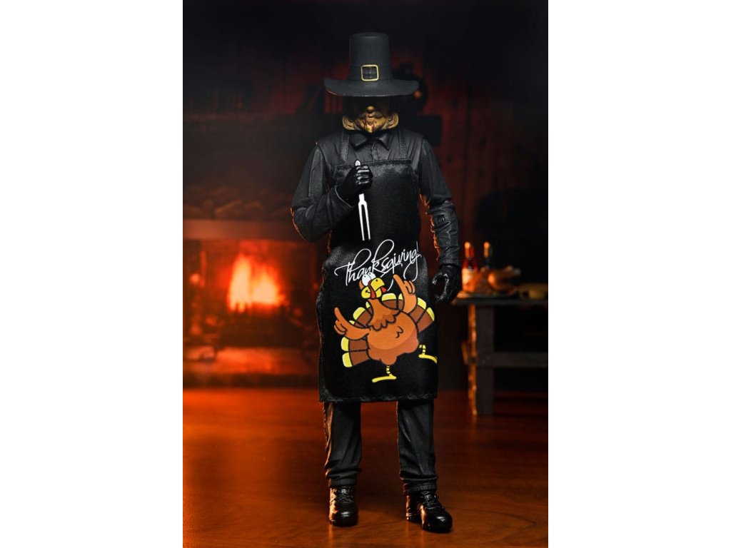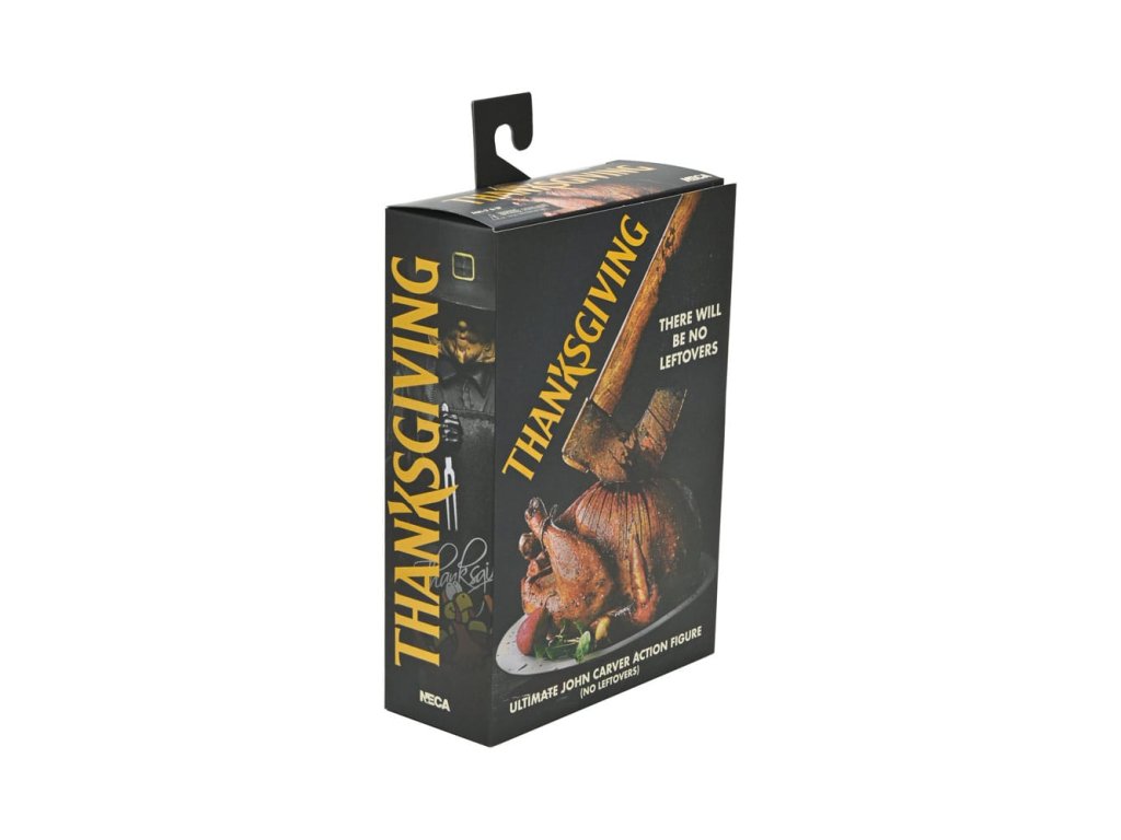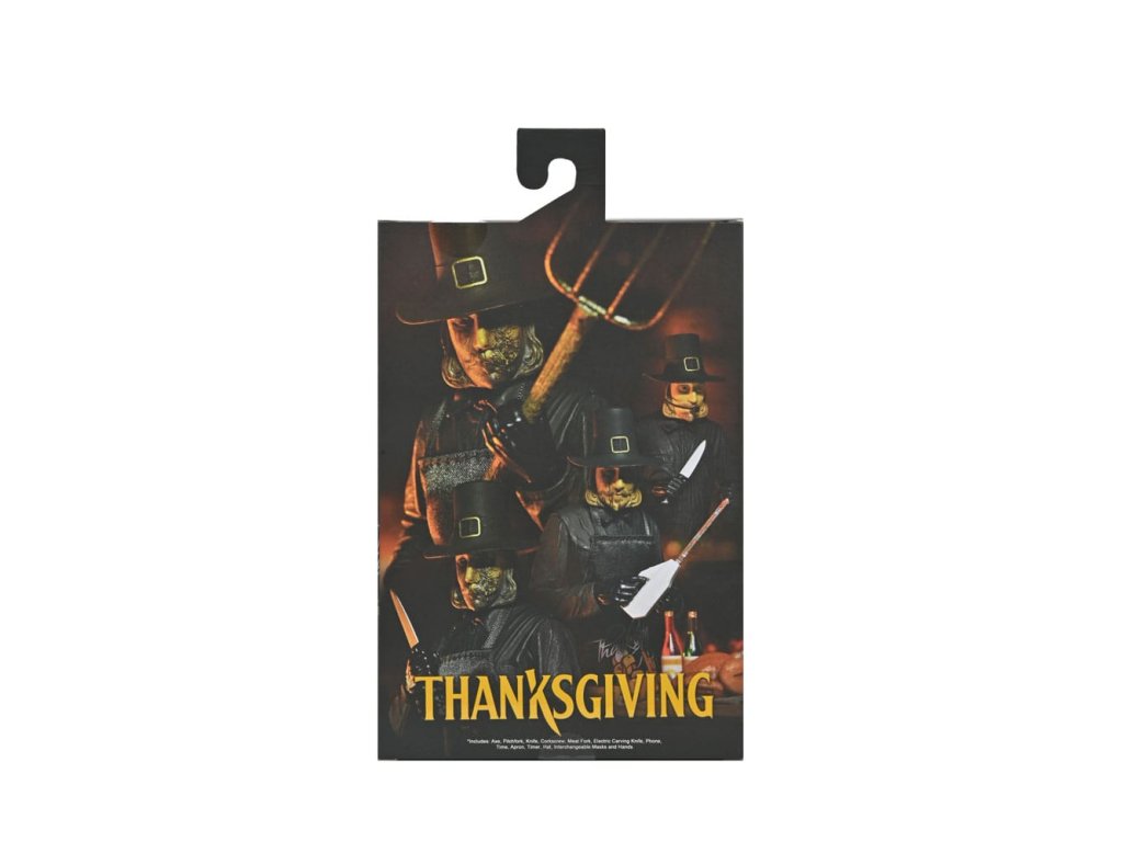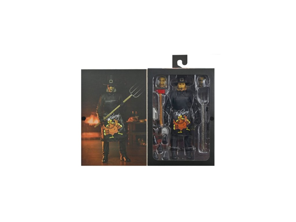 Eli Roth 2023-as véres blockbusteréből, a Hálaadásból érkezik a második ultimate ünnepi gyilkos akciófigura! A pulykát ábrázoló jelmezébe öltözött John Carver egy felejthetetlen lakomát készíthet el a rengeteg új kiegészítővel. Ez a 7 hüvelykes méretarányú mobil figura puha kötényt, cserélhető maszkot mikrofonnal, vérmaszkot, olvasztós maszkot, baltát, elektromos vágót, főzőidőzítőt, mobiltelefont állványon, vasvillát, konyhakést, vágóvillát és dugóhúzót tartalmaz. Plusz cserélhető kezek, hogy foghassa a rengeteg szokatlan fegyverét! Gyűjtői kivágott tokban érkezik, felpattintható elülső patenttal, amely tökéletes a NECA bemutatóhoz. Ezért a figuráért érdemes hálásnak lenni!Kiegészítő paraméterek