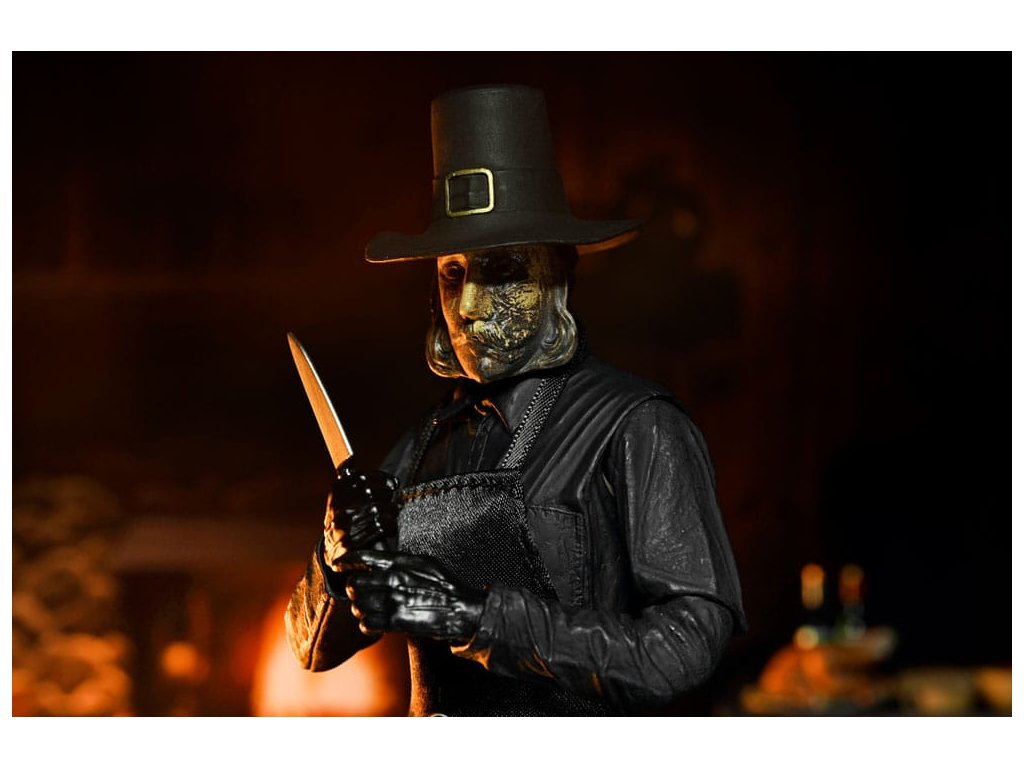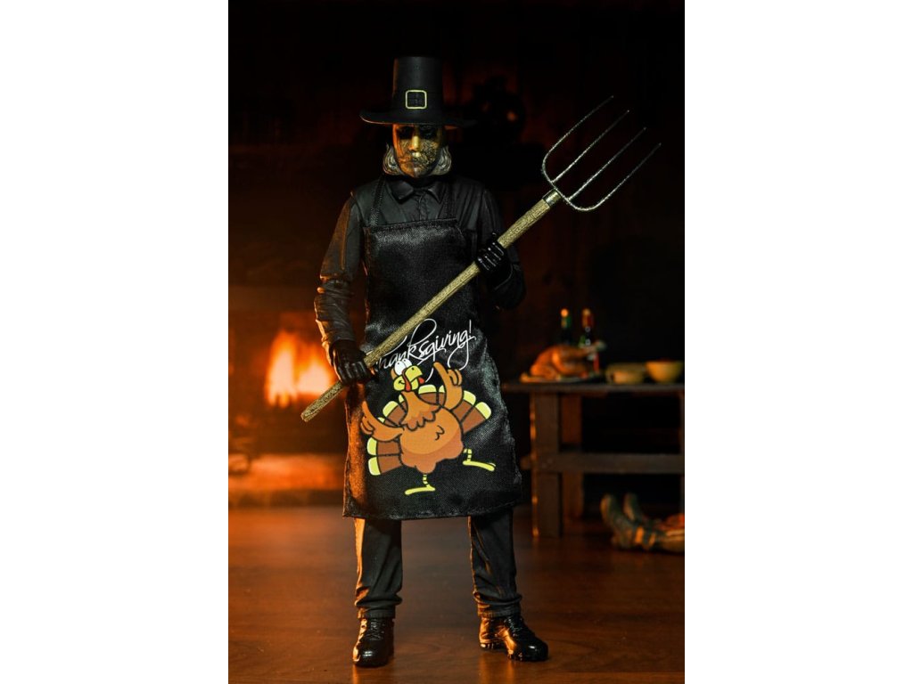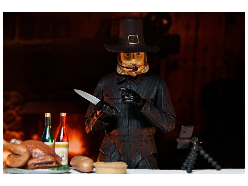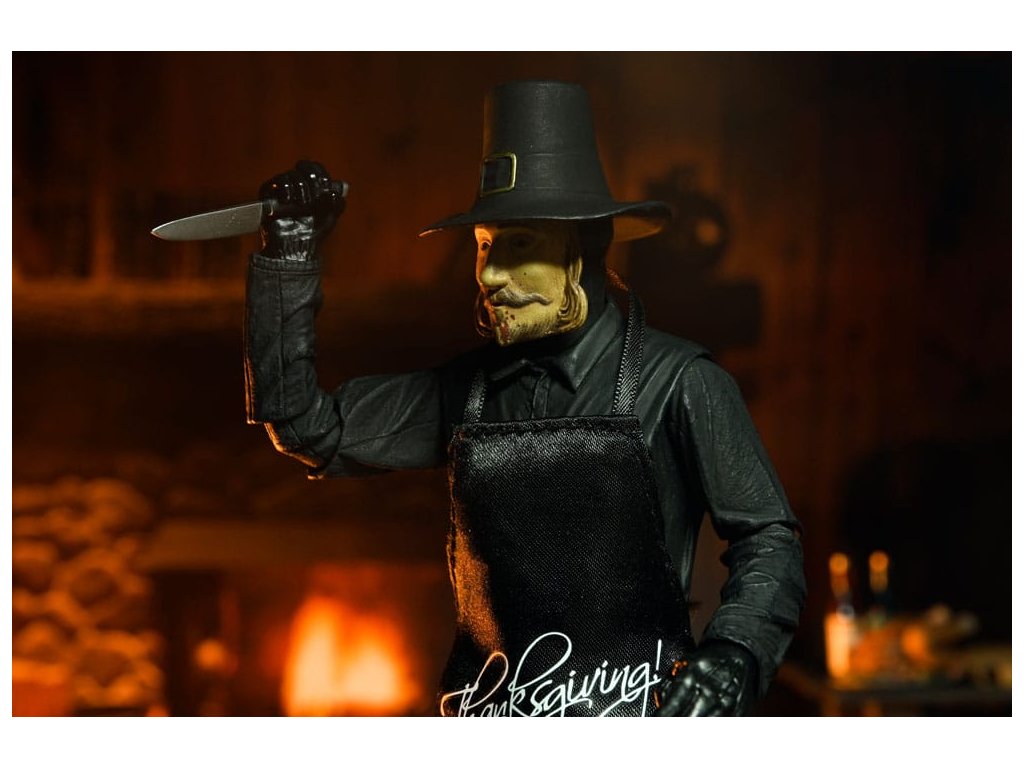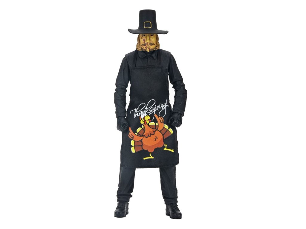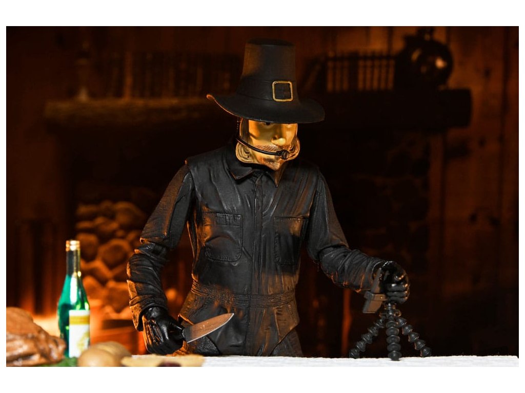 Eli Roth 2023-as véres blockbusteréből, a Hálaadásból érkezik a második ultimate ünnepi gyilkos akciófigura! A pulykát ábrázoló jelmezébe öltözött John Carver egy felejthetetlen lakomát készíthet el a rengeteg új kiegészítővel. Ez a 7 hüvelykes méretarányú mobil figura puha kötényt, cserélhető maszkot mikrofonnal, vérmaszkot, olvasztós maszkot, baltát, elektromos vágót, főzőidőzítőt, mobiltelefont állványon, vasvillát, konyhakést, vágóvillát és dugóhúzót tartalmaz. Plusz cserélhető kezek, hogy foghassa a rengeteg szokatlan fegyverét! Gyűjtői kivágott tokban érkezik, felpattintható elülső patenttal, amely tökéletes a NECA bemutatóhoz. Ezért a figuráért érdemes hálásnak lenni!Kiegészítő paraméterek