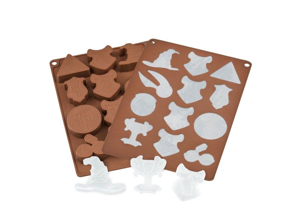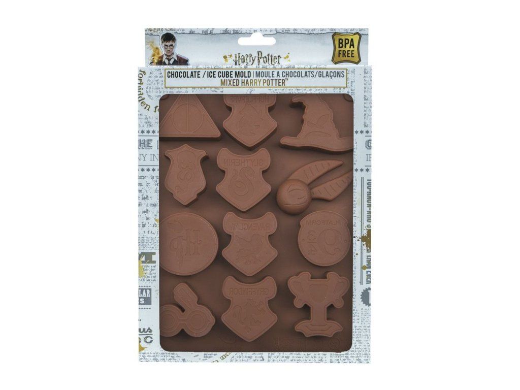 Ez a készlet a következő szimbólumokat tartalmazza : A kalap elválasztó, a Hufflepuff címer, a Halál ereklyéi, a bűbáj, a Slytherin címer, a Gonosz jele, a 9 3/4-es peron, a Ravenclaw címer, Harry Potter monogramja, az Arany Serleg, a Griffendél címer, Harry Potter szemüvege és sebhelye. Amikor egy Harry Potter tematikus partin ki akartál próbálni egy varázsitalt, vagy egyszerűen csak élvezni akartál egy jégkockás italt varázslatos szimbólumokkal? Frissítse fel italát a vegyes jégkockaformánkkal! Ha pedig a csokoládét kedveled, ezzel a formával finom csokoládét készíthetsz a jól megérdemelt szünetre!Kiegészítő paraméterek