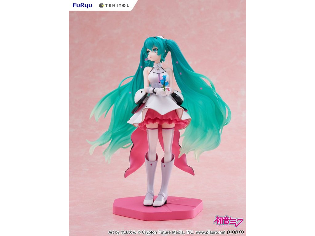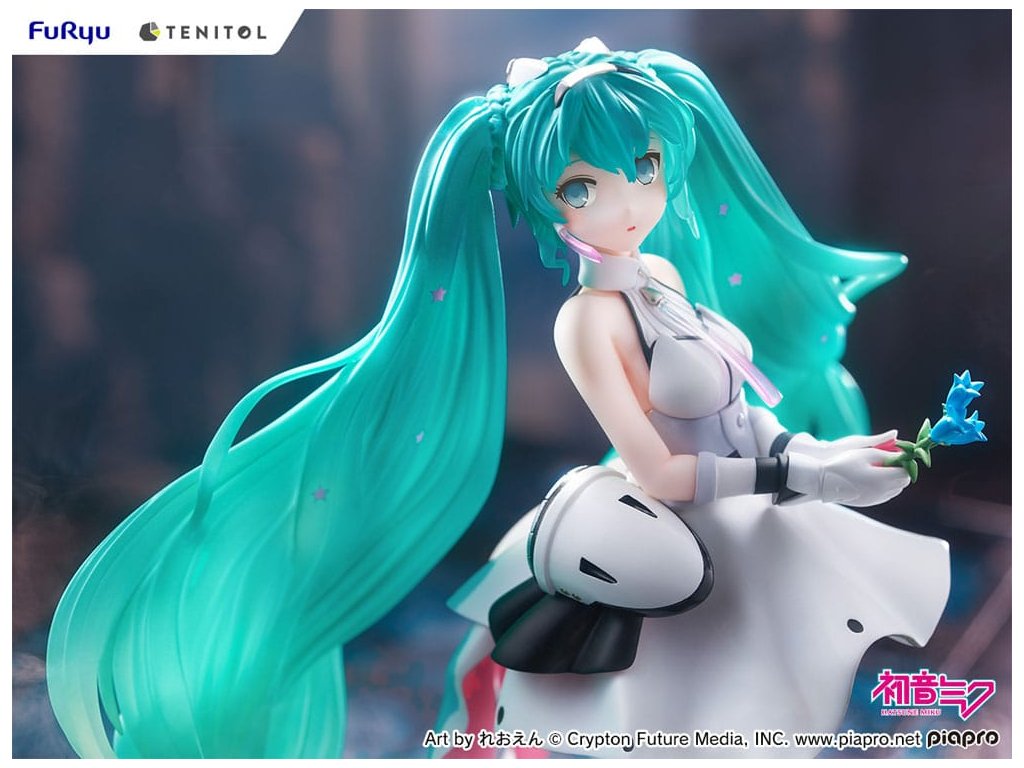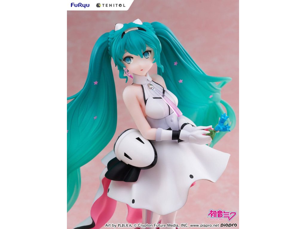 A FURYU 'TENITOL' megfizethető figuramárkától érkezik a Hatsune Miku figura. A figura 21,5 cm magas, és egy ablakkal ellátott dobozban érkezik.Kiegészítő paraméterek