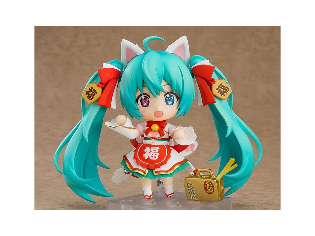A "Heroic Characters 01: Hatsune Miku" sorozatból érkezik az imádnivaló "Maneki Miku" - egy nendoroid Hatsune Miku figura, amely a szerencsét hozó japán maneki-neko figura design elemeit tartalmazza, amely szerencsét hoz a tulajdonosának! Három arclemezzel érkezik, köztük egy normál arccal, egy kacsintó arccal és egy izgatott arccal. A nendoroid egy senryobako aktatáskával, egy arany póréhagymával és egy cserélhető testrésszel is érkezik, hogy megjeleníthesse ülve. Mindenképpen egészítsd ki gyűjteményedet ezzel a Manachika Miku szerencsét hozó szoborral!Kiegészítő paraméterek