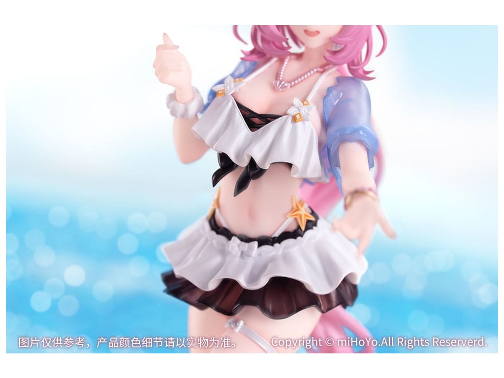 A rendkívül népszerű Honkai Impact 3 sorozatból Elysia debütál a Gift+ sorozatban egy új, 1/8 méretarányú figurával: "Elysia, Summer Miss Elf Ver."! Elysia egy napsütéses tengerparton áll a víz mellett fürdőruhában, és kinyújtott kezével invitál minket a vízbe. Alacsony lófarka kecsesen ringatózik mozdulatai nyomán, ruhájának átlátszó ujjai és szoknyája pedig lágyan lobog a tengeri szélben, fokozva a nyári tengerpart üdítő hangulatát. A talapzaton lévő hullámok gyönyörű színátmenettel vannak megfestve, ami magával ragadó élményt nyújt. Kapitány, csatlakozzunk Elysia-hoz ebben a nyári ünnepségben.Kiegészítő paraméterek