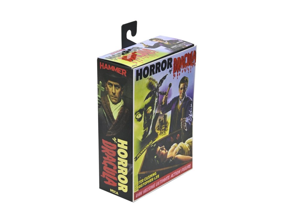 A NECA bemutatja a legendás Hammer House of Horror akciófigurák sorozatának második darabját! A Hammer az 1950-es évek óta készít jelentős horrorfilmeket, melyek közül az első a Drakula rémsége volt. Ez a film rabul ejtette a közönséget az élénk színek, az érzékiség és az erőszak keverékével. Peter Cushing alakítja Van Helsing ikonikus karakterét, akit azért küldenek, hogy elpusztítsa a Christopher Lee által alakított Drakulát. Ez a Van Helsing akciófigura 7 hüvelykes méretarányú, és cserélhető derékkal rendelkezik, így akár mellényben, akár hosszú kabátban is megjelenhet. A tartozékok között cserélhető fej, kéz és kesztyű, valamint kereszt, kalapács, fa karó, fa karóköteg és két gyertyatartó található. Gyűjtőbarát csomagolásban, ablakkal és nyitható elülső patenttal.Kiegészítő paraméterek