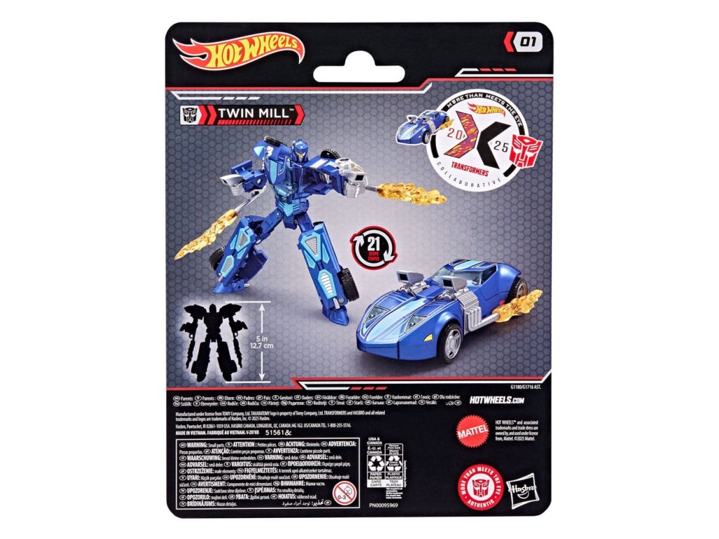 A Transformers robotok és a Hot Wheels® autók epikus világa találkozik a Hot Wheels® x Transformers Twin Mill™ átalakító akciófigurával! Tartalma: figura, 2 kiegészítő és használati utasítás. 12,5 cm-es figura átalakítható robot akciófigurából Twin Mill™ ihlette autó üzemmódba.