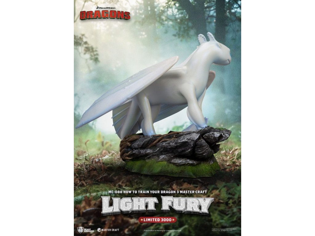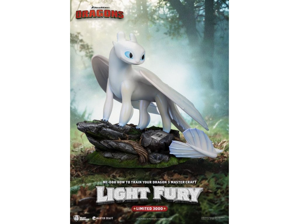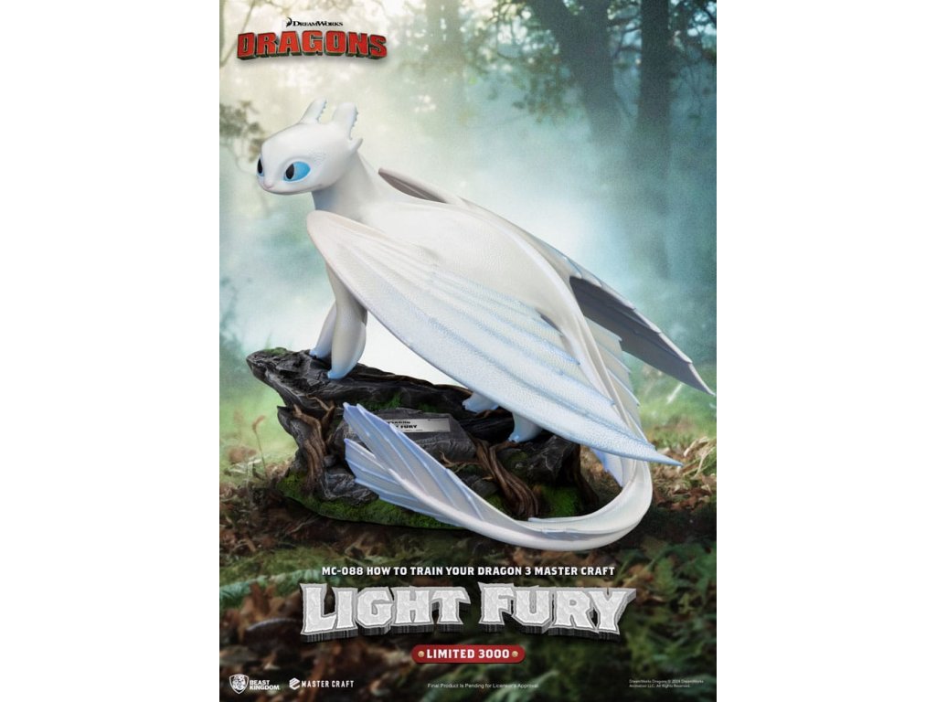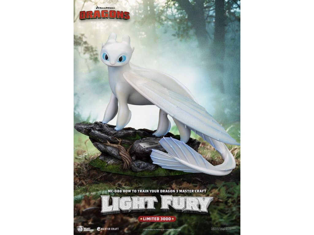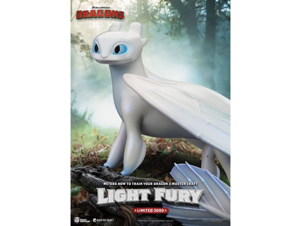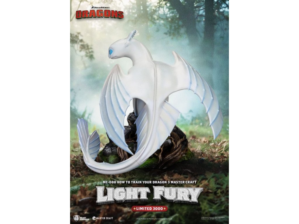Az Így neveld a sárkányodat 3-ban Fényes Düh egy nemes fehér sárkány, aki elbűvöli Fogatlant. Sok kihívás után Fogatlan elnyeri a szívét, és együtt boldogan alapítanak családot. A Beast Kingdom 'MC-067 How to Train Your Dragon 3 Master Craftsman Toothless' szobra nagyon népszerű, és világszerte elkelt. Most a Beast Kingdom előállt az 'MC-088 How to Train Your Dragon 3 Master of the Craft Bright Fury'-val. Ez a szobor a Fényes Düh pikkelyeit mutatja, és lágy gyöngyházkék fénnyel világít. Realisztikus mozgásával és részletes sziklájával tökéletesen megragadja a lényét. Világszerte 3000 darabra limitált, így még ma biztosítsd magadnak a saját Fényes Dühödet! - A professzionális szobrászat és a gyöngyházfényű kék ragyogás kiemeli Fényes Düh szépségét - Az 'MC-067 Fogatlan'-val párosítva tökéletes sárkánypárost alkotnak - Világszerte 3000 darabra limitált, mindegyik egyedi, számozott plakettel.Kiegészítő paraméterek