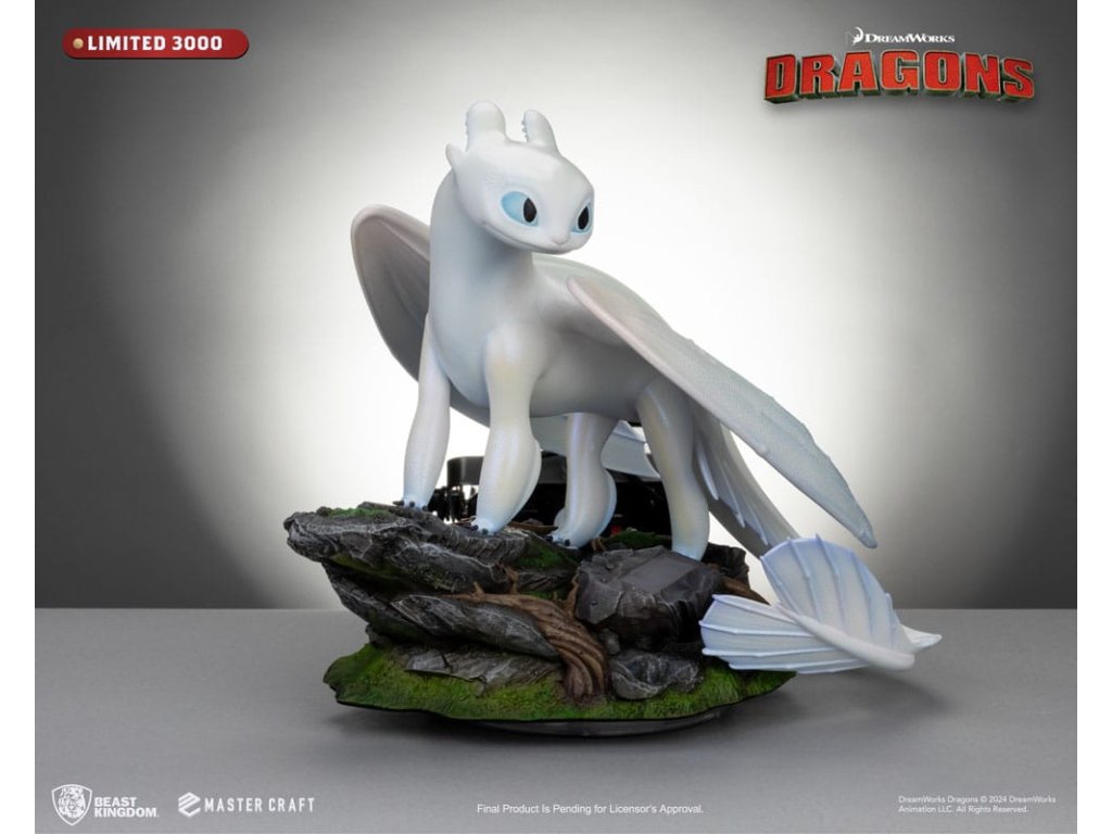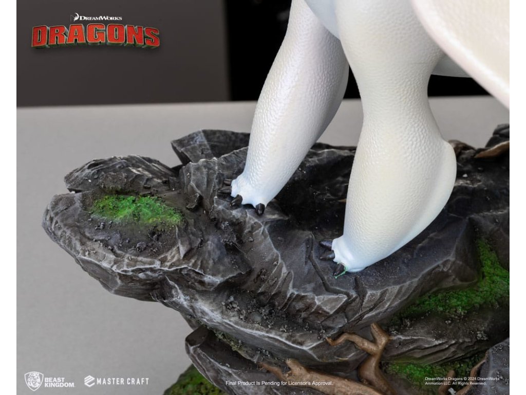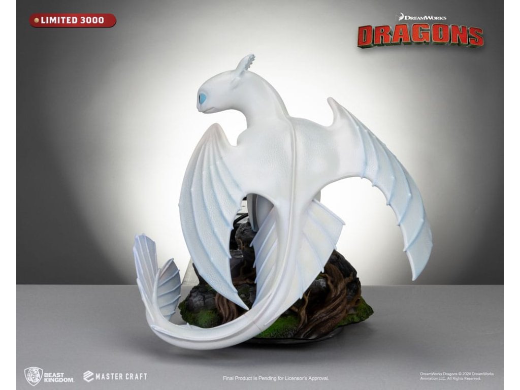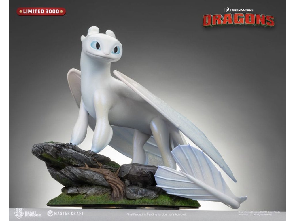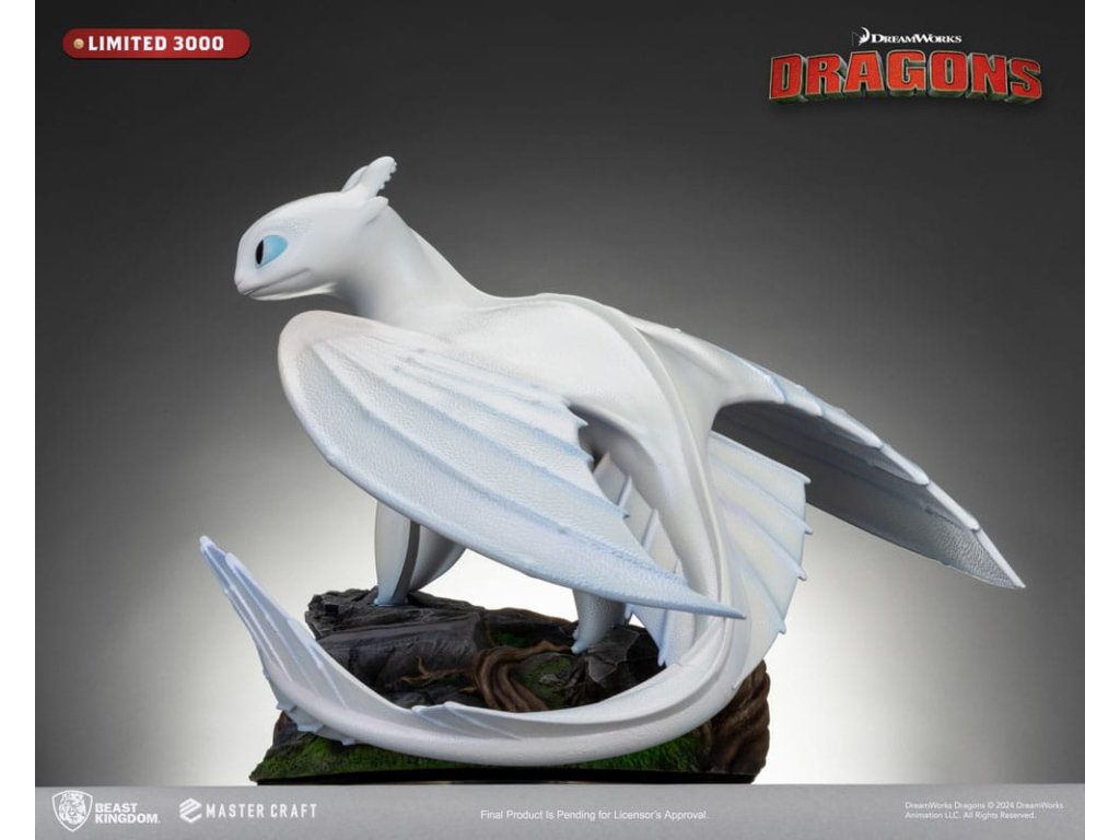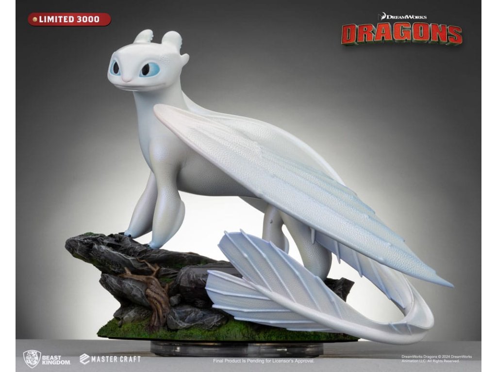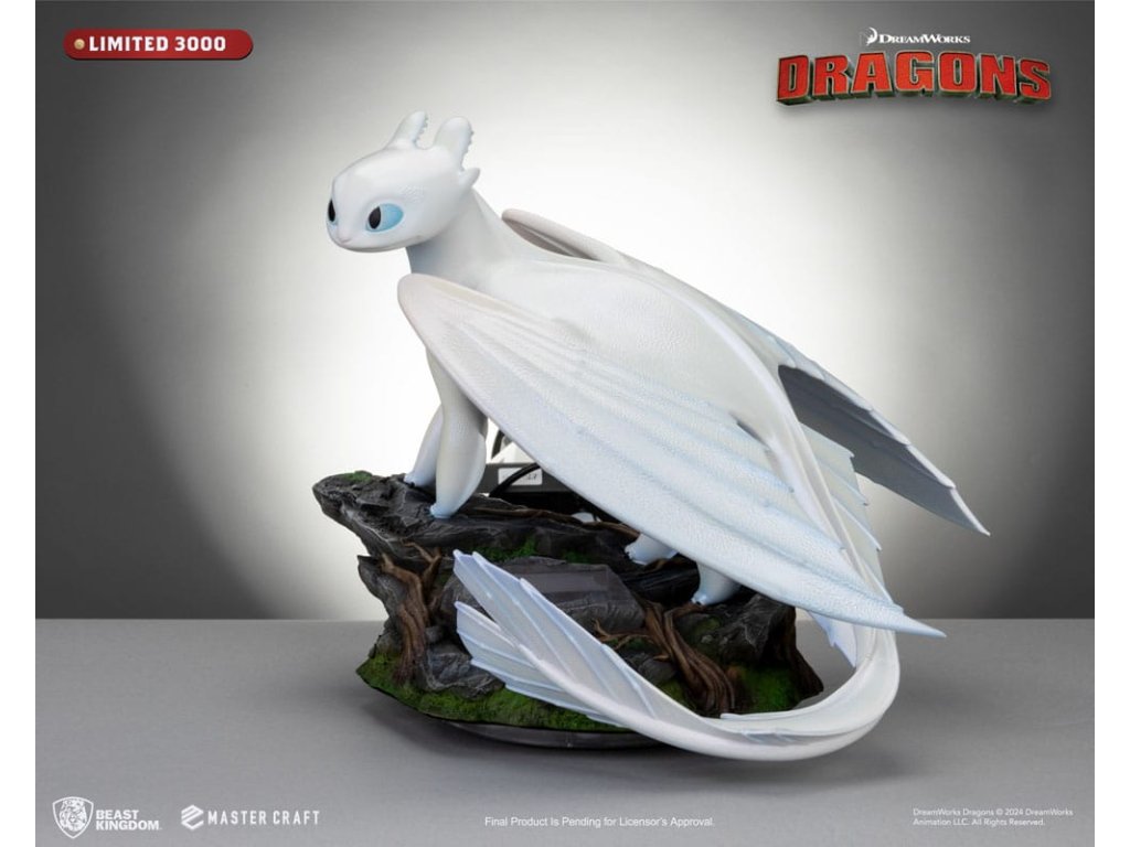 Az Így neveld a sárkányodat 3-ban Fényes Düh egy nemes fehér sárkány, aki elbűvöli Fogatlant. Sok kihívás után Fogatlan elnyeri a szívét, és együtt boldogan alapítanak családot. A Beast Kingdom 'MC-067 How to Train Your Dragon 3 Master Craftsman Toothless' szobra nagyon népszerű, és világszerte elkelt. Most a Beast Kingdom előállt az 'MC-088 How to Train Your Dragon 3 Master of the Craft Bright Fury'-val. Ez a szobor a Fényes Düh pikkelyeit mutatja, és lágy gyöngyházkék fénnyel világít. Realisztikus mozgásával és részletes sziklájával tökéletesen megragadja a lényét. Világszerte 3000 darabra limitált, így még ma biztosítsd magadnak a saját Fényes Dühödet! - A professzionális szobrászat és a gyöngyházfényű kék ragyogás kiemeli Fényes Düh szépségét - Az 'MC-067 Fogatlan'-val párosítva tökéletes sárkánypárost alkotnak - Világszerte 3000 darabra limitált, mindegyik egyedi, számozott plakettel.Kiegészítő paraméterek