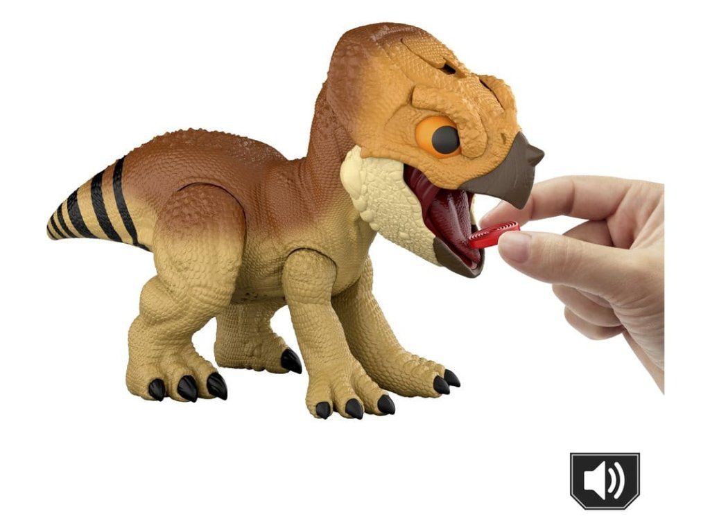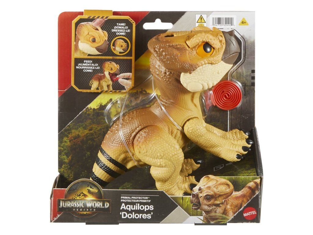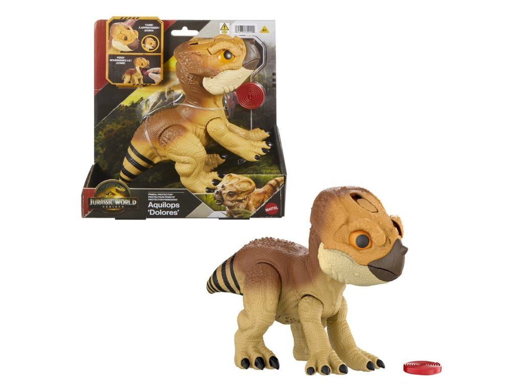 Hozd haza a Jurassic World: Rebirth című film ember-dinózaurusz interakcióit ezzel a Primal Protector Aquilops figurával, amelyet Isabella és dinoszaurusz társa, Dolores kapcsolata ihletett. Ez az interaktív dinoszaurusz játék pozitívan reagál a simogatásra, farkával aktiválható "védelmező" akciómóddal rendelkezik, és imádja rágcsálni a cukorkát. A film ihlette aktív társ nagyszerű ajándék a 4 éves és idősebb dinoszauruszrajongóknak. A szín és a design változhat. Elemeket tartalmaz (3× AG13 (LR44) gombelem).Kiegészítő paraméterek