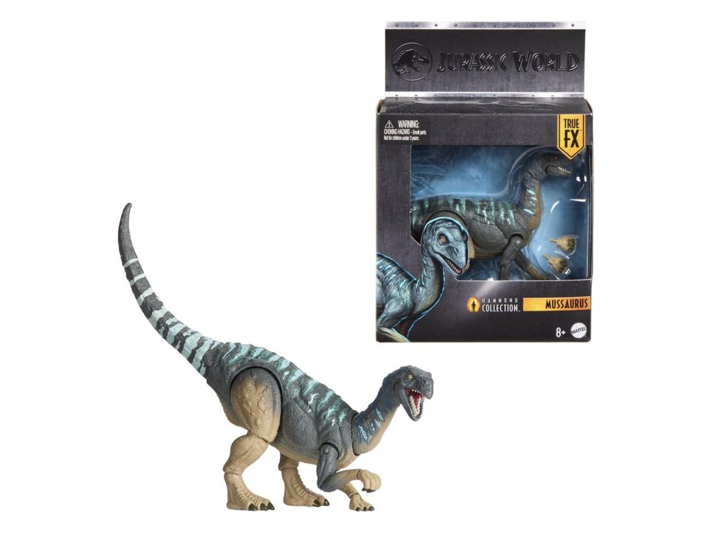 Ez a Mussaurus dinoszaurusz figura a Jurassic World univerzumból bővíti a Hammond gyűjteményt. A Jurassic Park innovatív alkotójáról elnevezett sorozatot a Jurassic World franchise kalandjai ihlették, és új minőségi mércét állít fel a gyűjthető dinoszauruszfigurák terén. A Mussaurus minőségi kialakítása 15 artikulációs pontot, valósághű szemeket és mozgó farkat tartalmaz. A figura egy extra lábkészletet is tartalmaz a függőleges pózokhoz, amely természetes tartást kölcsönöz ennek a gyakran hátulról álló dinoszaurusznak. A 8 éves és idősebb Jurassic World-gyűjtők ezt a körülbelül 21 cm magas dinoszauruszt is szívesen felveszik gyűjteményükbe. A színek és a design változhat.