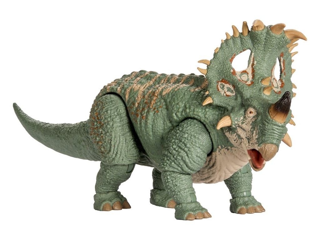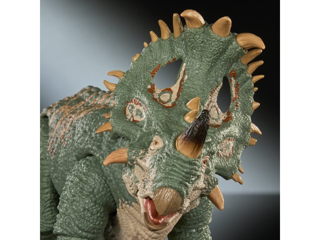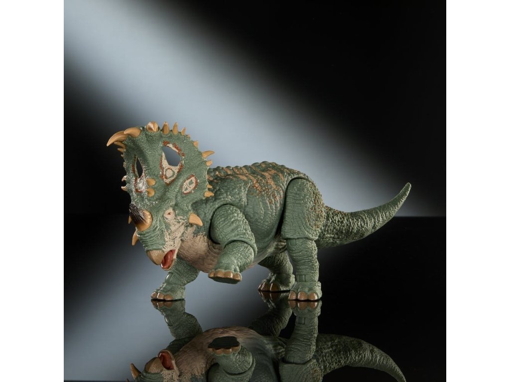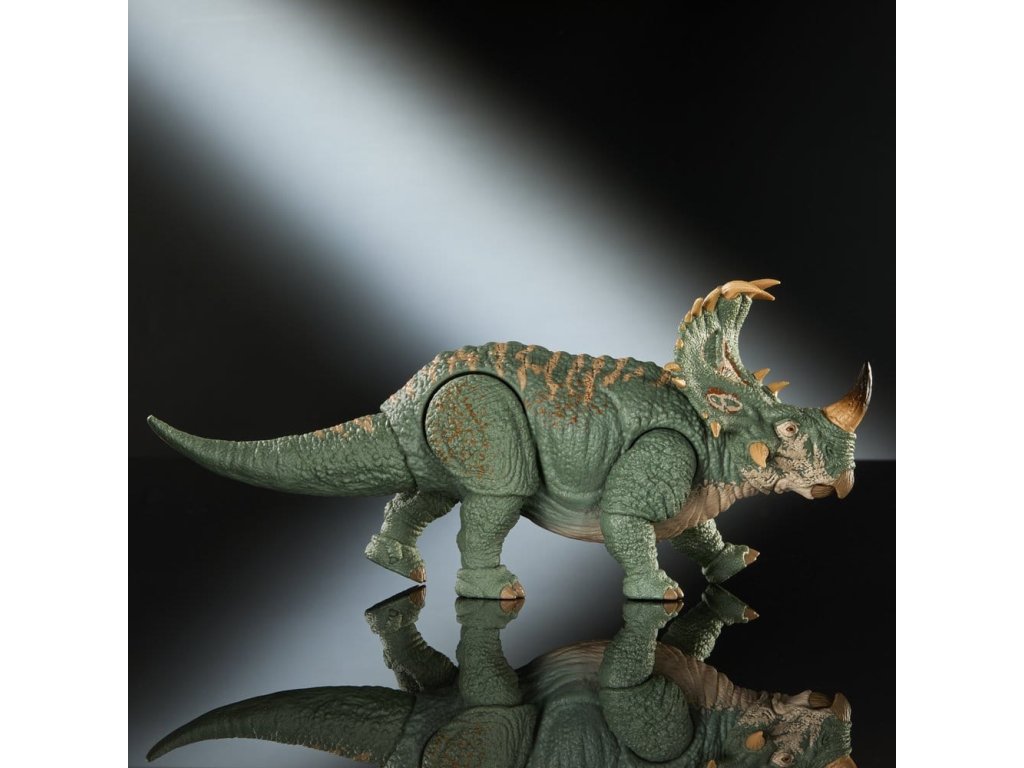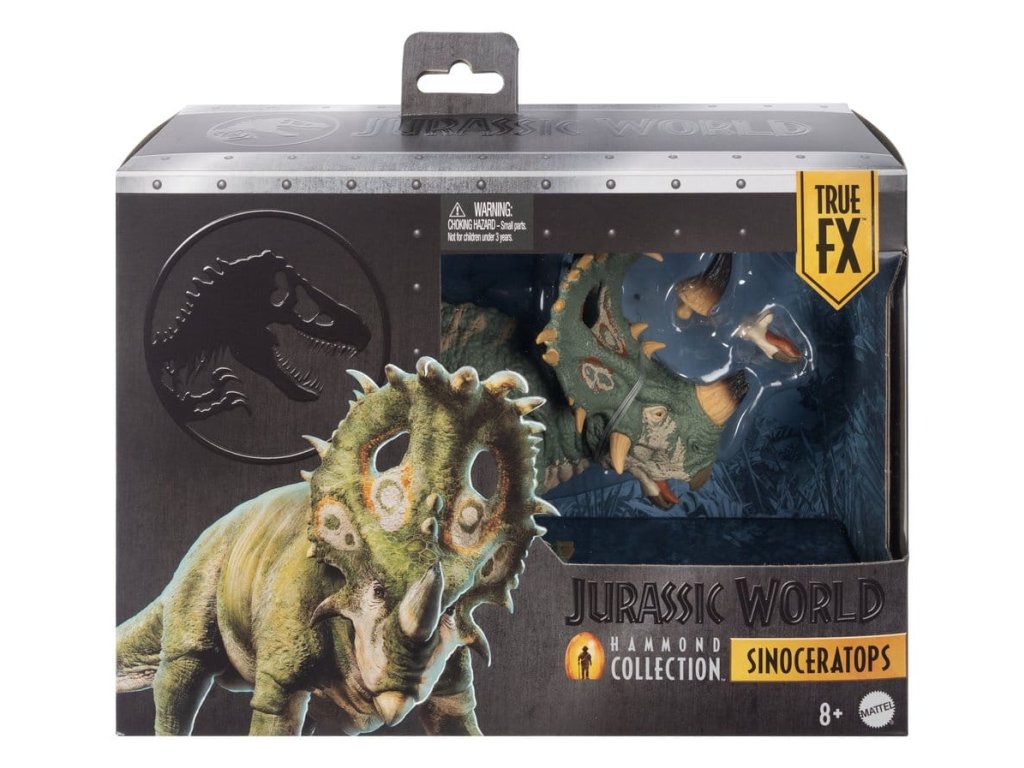 A Jurassic World Hammond kollekció új mércét állított fel a gyűjtőfigurák terén, összetett artikulációs pontokkal és valósághű részletességgel. Ezt a filmszerűen pontos Sinoceratops figurát a Jurassic World: A birodalom bukása című film felejthetetlen lávajelenete ihlette. A körülbelül 30 cm hosszú figura cserélhető szarvakkal rendelkezik. Az egyik szarv letört, a másik pedig ép. Ezenkívül az alsó állkapocs cserélhető, így a száj valósághűen nyitható és zárható. A hiteles részletek közé tartoznak a valósághű szemek, a mozgatható farok és a 14 csuklós pont. Ez a Sinoceratops abszolút kötelező darab a 8 éves és idősebb gyűjtők számára. A színek és a design változhat.