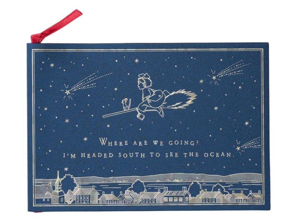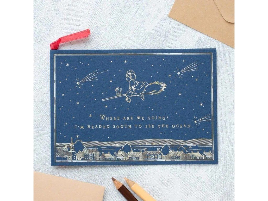 Kiki futárszolgálat motívummal ellátott kártya gyönyörű éjszakai égbolt mintával. Belseje kiváló minőségű fehér papírból készült, és masnival félbehajtva sok üzenet megírását teszi lehetővé. Tökéletes ajándék különleges alkalomra, üzenetre vagy ünneplésre. Méret: 15 x 10 cm.Kiegészítő paraméterek