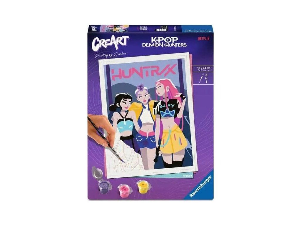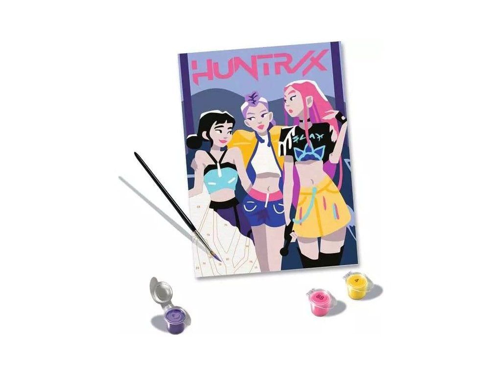 Nagyszerű motívumok, élénk színek és fényes lakkozás a tökéletes kivitelezésért. A sikeres KPop animációs film, a Demon Hunters által inspirált, divatos Huntrix téma nagyszerű festési szórakozást kínál 12 éves kortól. A motívum körvonalai már előre kinyomtatva és számozva vannak, és csak ki kell festeni őket előkészített akrilfestékekkel. Ez a festés garantáltan sikeres, egyedi fali dekoráció. A festés még sosem volt ilyen egyszerű!Kiegészítő paraméterek