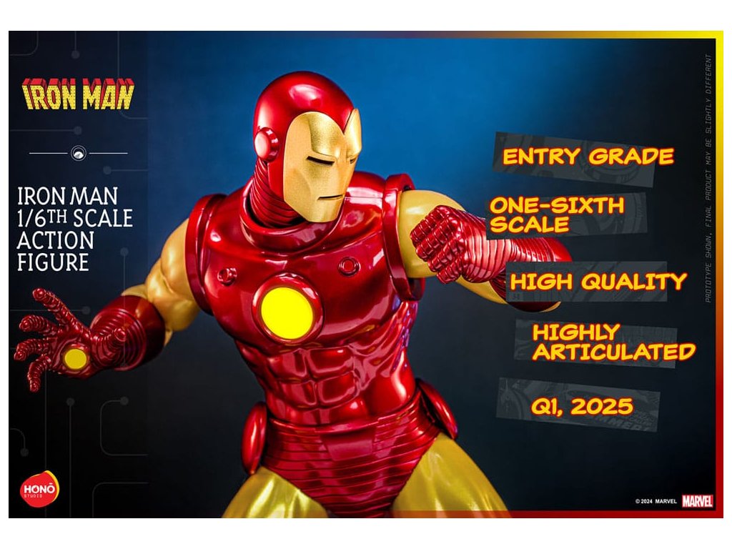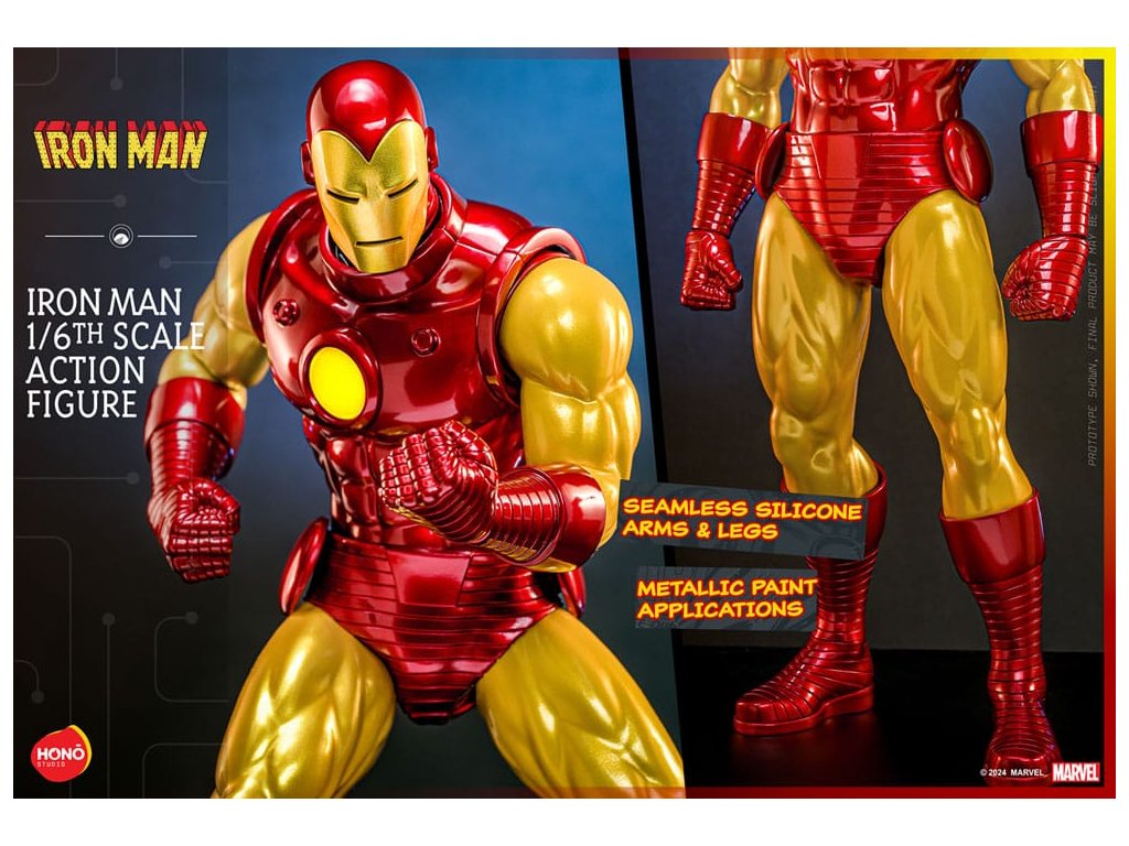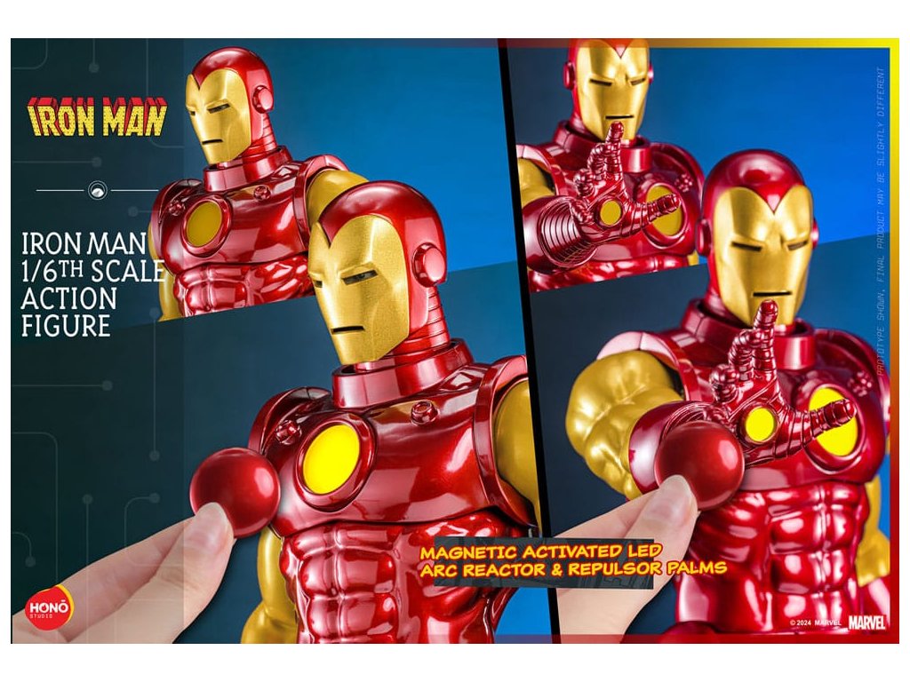 A HONO STUDIO visszahozza a nosztalgiát! A Vasember képregények alapján készült Vasember akciófigura újratervezett testtel rendelkezik, szilárd szilikon karokkal és térdekkel, ívreaktorral és repulzor tenyérrel, mágneses LED fénnyel, valamint a képregény borítójának hátterével! Ez az 1/6-os méretarányú figura cserélhető maszkokat és kivehető ellenszeradagolókat is tartalmaz, megörökítve a Vasember klasszikus megjelenésének legapróbb részleteit a különböző korszakokban.Kiegészítő paraméterek