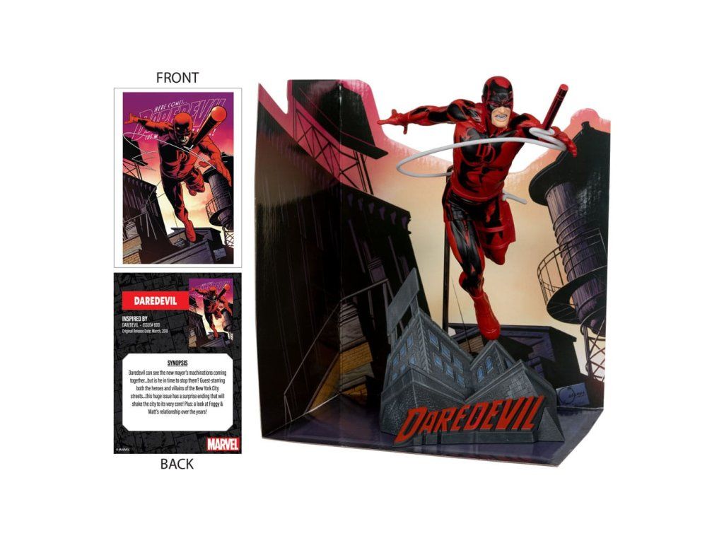 Daredevil látja, hogy az új polgármester tervei összeállnak... de meg tudja-e állítani őket? Vendéghősökkel és gonosztevőkkel New York utcáiról... ez a nagy epizód olyan meglepetésszerű befejezést tartogat, amely alapjaiban rengeti meg a várost! Plusz: egy pillantás Foggy és Matt kapcsolatára az évek során! - A Daredevil 600. számából inspirálódott - Gyűjthető 1:10 méretarányú modell környezeti alappal és jelenetháttérrel - Tartalmaz egy kártyát a karakterrajzokkal az elején és egy rövid áttekintést a képregényről!Kiegészítő paraméterek