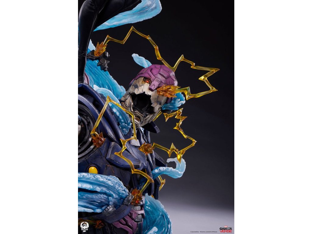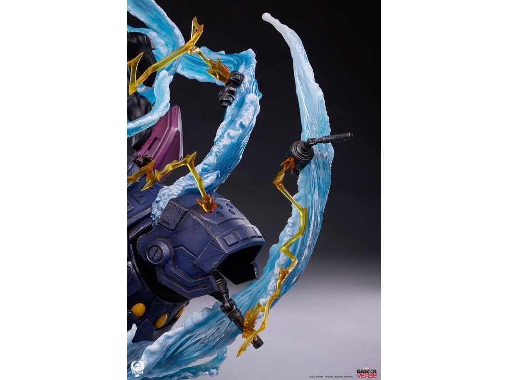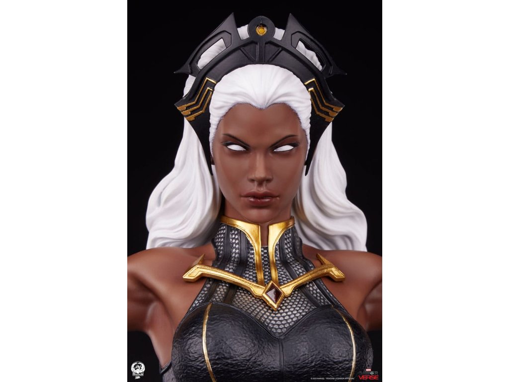 A Premium Collectibles prémium felszerelési stúdió bemutatja Storm 1:3 méretarányú szobrát, amelyet a Marvel's Future Revolution című filmben való ábrázolása ihletett. A 94 cm magas és 55 cm széles, teljes egészében faragott szobor az X-Men veteránját ábrázolja, amint egy szétszedett Sentinel bázis összetett környezete felett lebeg, miközben hihetetlen erejét szabadjára engedi. Storm hihetetlen erejének bizonyságául víz és villámlás részletei veszik körül a mutánsvadász robotot, élénk színpalettával akciódús mozgás benyomását keltve. A részletes portré a Föld-elemek erejét használó, fehér szemű Ororo Munroe-t ábrázolja. Platinafehér haja lobog, a Vihar misztikus varázslatát idézve. Koronája és családi ékszere kiegészíti zaklatott megjelenését ebben a dinamikus gyűjtői szoborban. Storm a jellegzetes fekete öltönyében jelenik meg, amely hálót és bőrt utánzó részletekkel és kontrasztos, fényes arany ékezetekkel van ellátva. Hasított köpenye a kezei alatt folyik, ahogy felemeli őket, hogy felszabadítsa erejét. Fogadd el az elemek dühét, és egészítsd ki gyűjteményedet a Premium Art Studio Storm 1:3 méretű szobrával még ma! Termék mérete: 94 x 55 x 40 cm A termék mérete miatt további szállítási költségek merülnek fel. E költségek meghatározásához az Ön tartózkodási helye mellett a csomag tényleges méretét és súlyát is ismernünk kell. Mindkettő jelenleg még nem ismert, és előfordulhat, hogy nem áll rendelkezésre, amíg a termék meg nem érkezik a raktárunkba.Kiegészítő paraméterek