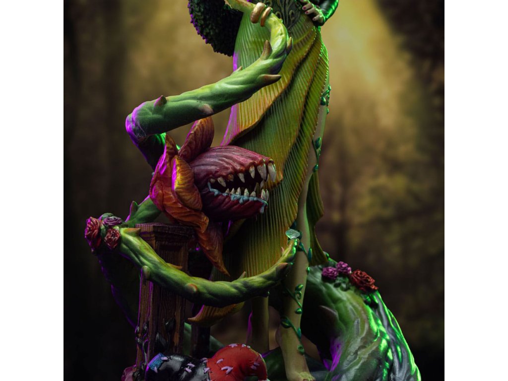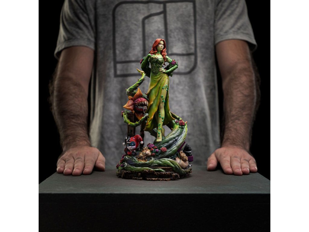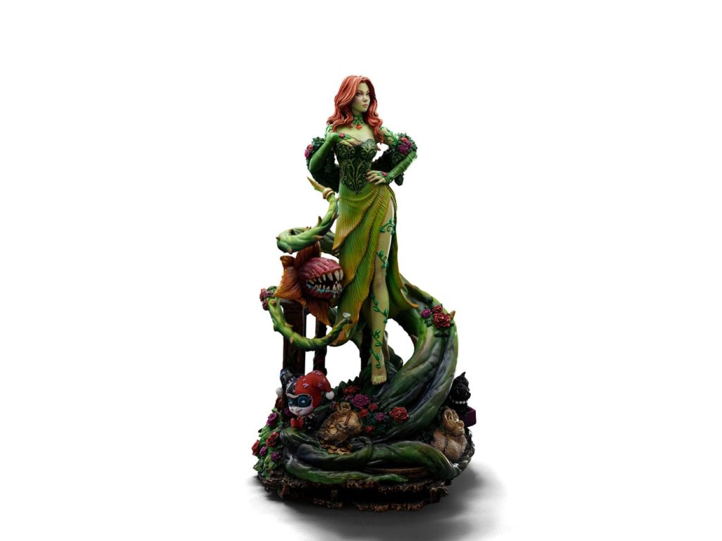 Gotham Május Királynője az Iron Studios új szobrában! A gyönyörű és csábító, vörös hajú pszicho-eco-terrorista egy régi és korhadt fapadló felett egy hatalmas, mutáns, nagy tüskékkel borított növényi csápokon siklik át, amely egy fogakkal teli húsevő virághoz csatlakozik, őrületének egy másik alkotásához. A Zöld nevű bolygóközi erőhöz kötődik, természetfeletti hatalommal rendelkezik a növényi élet felett, és lila és vörös virágokkal díszített smaragdzöld ruhát viselve képes tudatirányító feromonokat kiválasztani, ami az egyik legveszélyesebb szupergonosszá teszi. Egy olyan szajréval teli bázis felett, mint a dublónok és aranyrudak, legjobb barátja és visszatérő szövetségese, Harley Quinn babája, a város másik főszereplőjére utaló cicák stb, Az Iron Studios bemutatja a "Poison Ivy (Gotham City Sirens) Deluxe - DC Comics - 1/10 méretarányú művészet" szobrot, amelyet az Iron Studios által átdolgozott Gotham City Sirens képregények ihlettek.Az Iron Studios a "Poison Ivy (Gotham City Sirens) - DC Comics - 1/10 méretarányú művészet" szobor normál változatát is elhozza, amelyben a gonosztevő egy növényekből, virágokból és zöld csápokból álló alapzat felett, egy korhadt fapadló felett helyezkedik el. Dr. Pamela Isley, ismertebb nevén Poison Ivy egyike a Batman ellenségeinek galériáját alkotó szupergonoszok csoportjának. A növények, a botanika és a szélsőséges környezetvédelem megszállottságától hajtva, valamint azzal a vágyával, hogy bármi áron megmentse a világot az emberek gonoszságaitól, Pamela egy zseniális tudós és egy hibrid növény DNS-ével rendelkező metaember, aki mutáns növényeket, növényekből származó feromonokat és mérgeket, valamint saját vérét használja fel bűnözői tevékenységeihez. A feromonokkal és egyedülálló biológiájával kihangsúlyozott szépségének teljes tudatában Poison Ivy-t csábító szociopataként ábrázolják, aki azt hiszi, hogy a feladata Zelena védelme, még akkor is, ha módszerei pusztítóak. Az egyetlen személy, aki iránt Ivy valódi vonzalmat mutat, Harley Quinn, akivel különleges kapcsolatot alakított ki, amelyben mindkettőjüket bűntársként, barátként és néha szeretőként ábrázolják. A karaktert Robert Kanigher alkotta meg, és először a Batman #181-ben jelent meg 1996-ban. Kanigher Poison Ivy-t Bettie Page modell ihlette, akinek ugyanolyan frizurát és déli akcentust adott. Pamela a főiskolán Alec Holland tudóstól tanult haladó botanikai biokémiát, aki később a tudatát és emlékeit a mocsárral egyesítette, és Dr. Jason Woodrue volt a mentora, akiből a Floronic Man nevű főgonosz lett. Woodrue volt az, aki egy kísérlet során mérget és toxinokat fecskendezett Isley-be, aminek következtében megváltozott. 2009 és 2011 között jelent meg képregényben a Gotham City Sirens sorozat, amelyet Paul Dini írt. A sorozatban Gatwoman, Poison Ivy és Harley Quinn kénytelenek összefogni, hogy megvédjék magukat, most az Iron Studios egy új, eredeti gyűjteményt mutat be a karakterek újragondolásával. Az áprilisi Inside Iron Studios Day-en mutatták be, és már előrendelhető, és nézz vissza, ha a jövőben még több Iron Studios kiadványt szeretnél látni a közösségi média csatornáikon!Kiegészítő paraméterek
