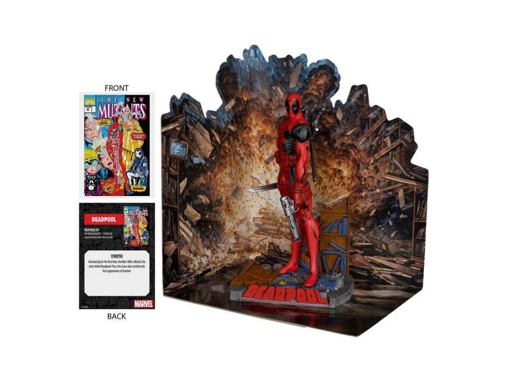 Most először mutatkozik be a szájhős, a rendkívül halálos Deadpool! - A New Mutants #98. száma ihlette - 1:10 méretarányú figura környezettel és háttérjelenettel - Tartalmaz egy gyűjthető művészeti kártyát, amelynek elején a karakter képe és a képregény rövid leírása látható.