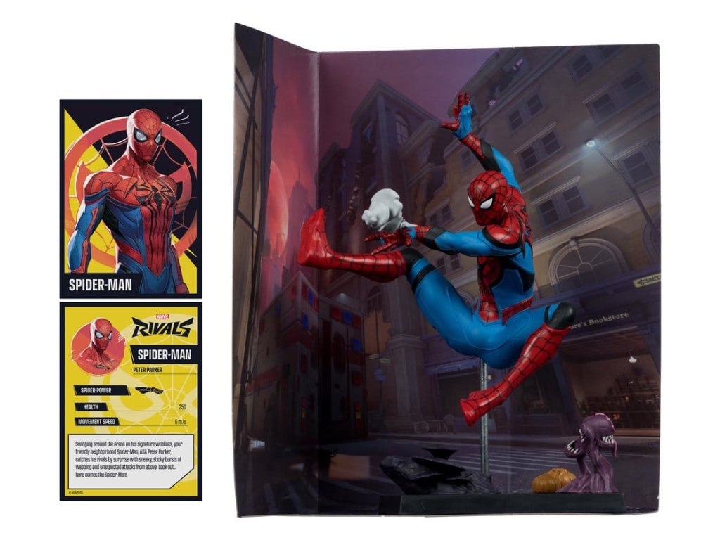 Az arénát védjegyének számító hálóvonalakon körbejárva a barátságos Pókember, azaz Peter Parker kiszámíthatatlan, ragadós hálófoszlányokkal és váratlan felülről jövő támadásokkal lepi meg ellenfeleit. Vigyázz... itt jön Pókember! - A Marvel Rivals ihlette - Gyűjthető 1:6 méretarányú figura környezeti alaplappal és háttérjelenettel - Körülbelül 26 hüvelyk magas - Tartalmazza a Marvel Rivals képregény 1. számát - Tartalmazza a figurát ábrázoló gyűjtői művészeti kártyát - Gyűjtsd össze az összes McFarlane Toys Marvel és Marvel Rivals Collection játékot. Előzetes megjelenési dátum: 2026. február.Kiegészítő paraméterek