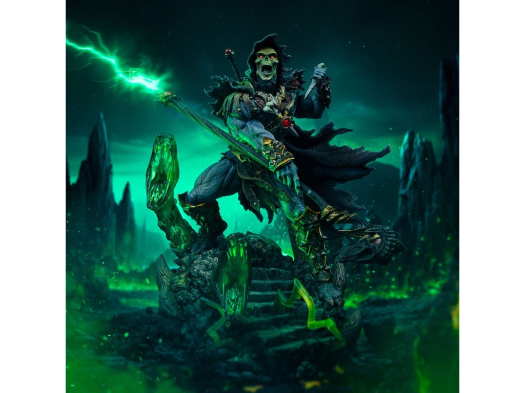 Eternia legnagyobb gonosztevője az Iron Studios új deluxe szobrán! Egy sötét erőd sziklába vájt kőlépcsőjén, amelyet egy baljós varázslónak, egy rosszindulatú lényekből álló klán vezetőjének a szolgálatába állított, hogy meghódítsa és uralja világát, valamint kiterjessze birodalmát, egy félelmetes és szörnyű alak gonosz pálcájának sötét mágiájával szörnyű energiakígyókat hoz létre, miközben jobb kezében egy csonttőrt tart, amely a páncélja díszítésének része. A bámulatos részletességgel megmunkált, a legnagyobb odaadással és aprólékos gondossággal készített, a gyűjteményekben a legmagasabb státuszt elérő Iron Studios büszkén mutatja be a "Skeletor Unleashed - MOTU - Deluxe Art Scale 1/10" szobrot, amely He-Man legnagyobb ellenfelét ábrázolja, mint az Unleashed sorozat első Masters of Universe karakterét, a szoborcsalád megnövelt színvonalú, 1/10 méretarányú szobrait, egy rendkívül részletes alapon, sötét elemekkel, a Kígyóhegyi kúriájának diorámajelenetére emlékeztető sötét elemekkel.A Masters of the Universe franchise főgonoszaként és az Eternia bolygó legveszélyesebb fenyegetéseként Skeletor egy rendkívül erős varázsló, aki sötét mágikus erők széles skálájával és jelentős tudományos képességekkel rendelkezik. A Gonosz Horda tagja és a baljós Hordak tanítványaként kiképzett hadúr, aki a múltban Keldor, Randor király elveszett féltestvére volt, aki egy másik dimenzióban tűnt el, és akit Hordak mentett meg. Amikor Hordak és a Horda megtámadta Eterniát, Hordak megpróbálta elrabolni a királyi ikreket, Randor király és Marlena királynő gyermekeit, de a terv kudarcot vallott, így Skeletor hátrahagyta, és csak a lányt, Adora hercegnőt vitte magával. Skeletor a Kígyóhegyen telepedett le, és saját hadsereget toborzott harcias alárendeltekből, hogy szolgálják őt, és igyekszik uralni Eterniát és Grayskullt és annak hatalmát, He-Man legnagyobb ellenségévé, Eternia és a Grayskull kastély titkainak védelmezőjévé vált.Méretek: 23 x 19,5 x 20 cm.Kiegészítő paraméterek