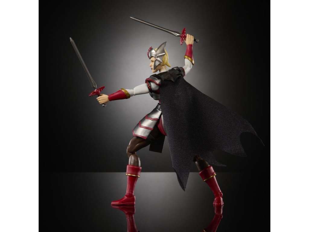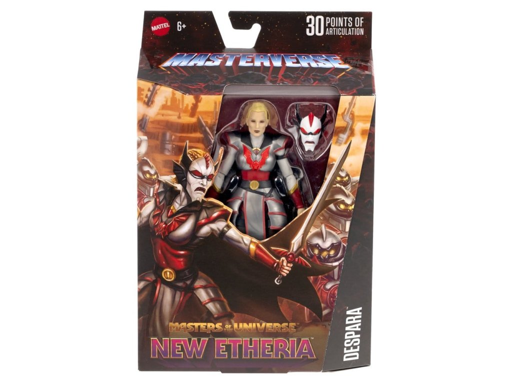 A Mattel "Masterverse" sorozatából származik ez a rendkívül jól tagolt és teljesen mozgatható akciófigura. Körülbelül 18 cm-es, és tartozékokkal együtt, ablakos dobozban érkezik.