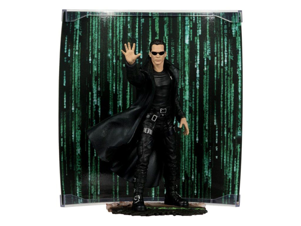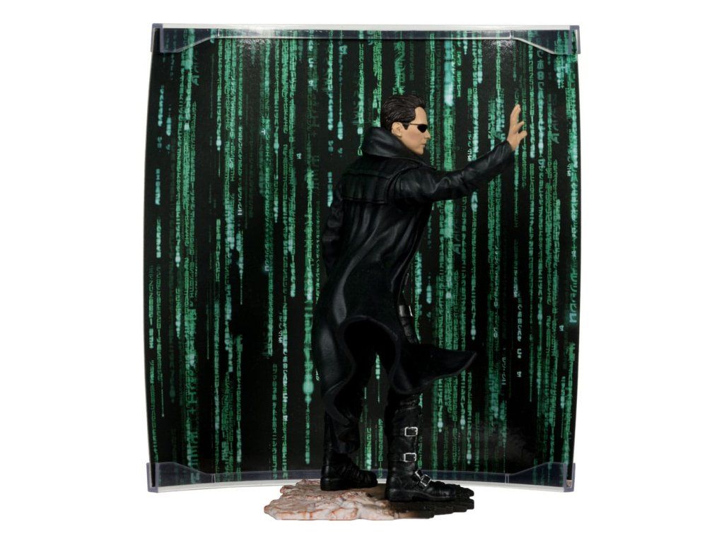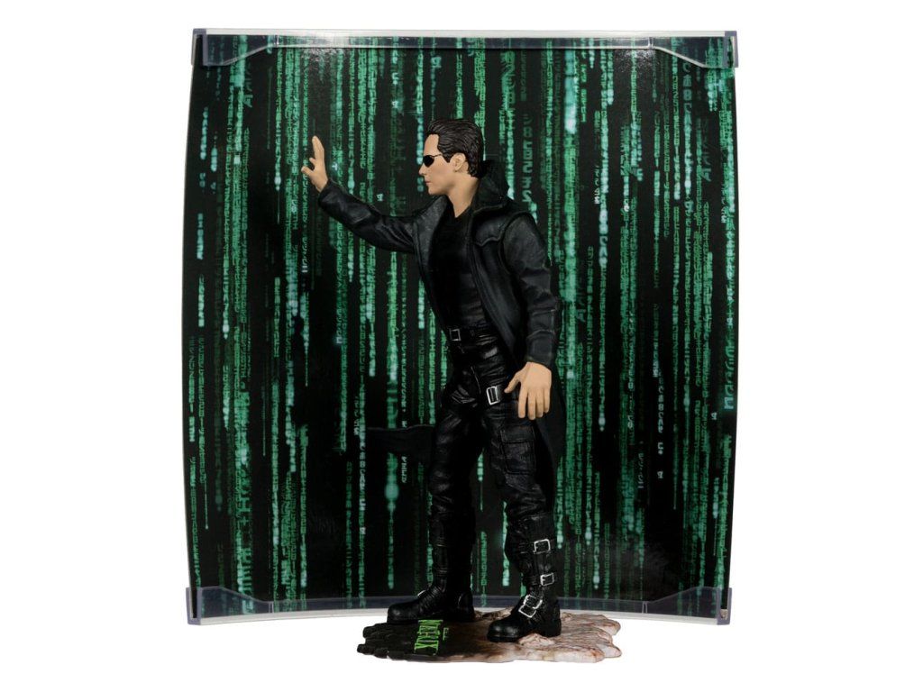 Neo egy fiatal szoftvermérnök és ideiglenes hacker, akit néhány titokzatos alak kiválaszt, hogy bevezesse őt a mátrix titkaiba. Úgy tűnik, hogy a rendőrség is követi őt, és úgy dönt, hogy kideríti, amit mindig is sejtett: hogy a világ nem egészen az, aminek látszik, és hogy a háttérben egy rosszindulatú összeesküvés munkálkodik - Rendkívül részletes, 15 cm-es, limitált kiadású figura - Tartalmazza a környezetet bemutató, festői nyomtatott hátteret és alapot - Tartalmazza a művészeti kártyát, számozott eredetiségigazolással és kártyatartóval. Benne rejtett meglepetés.