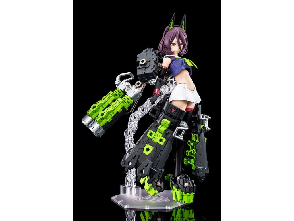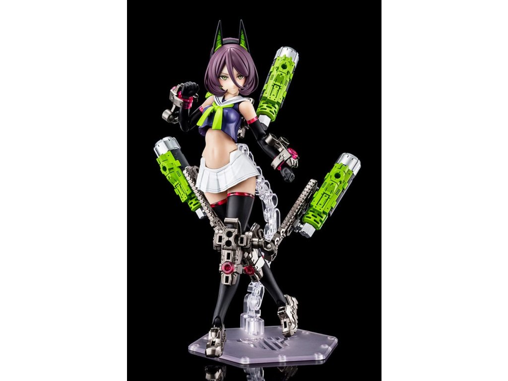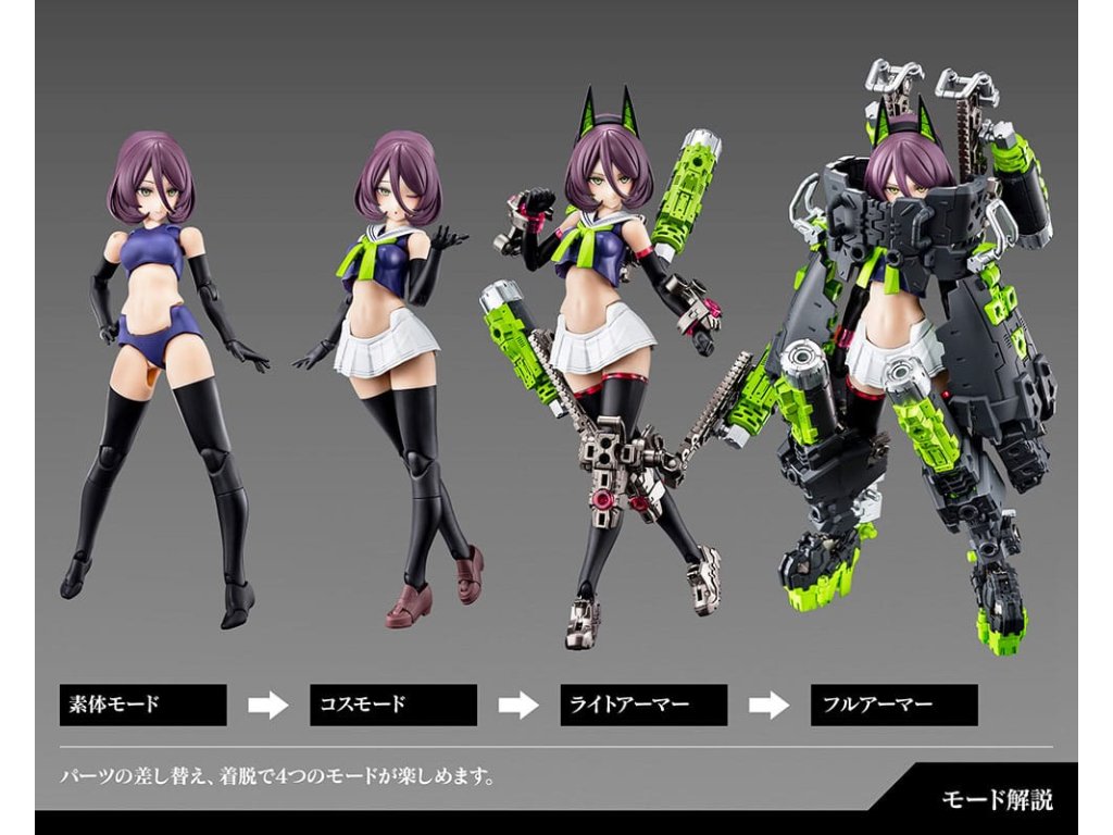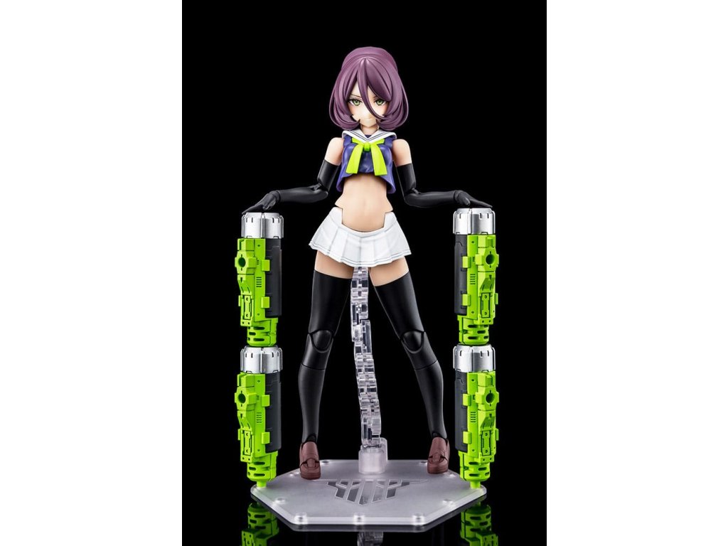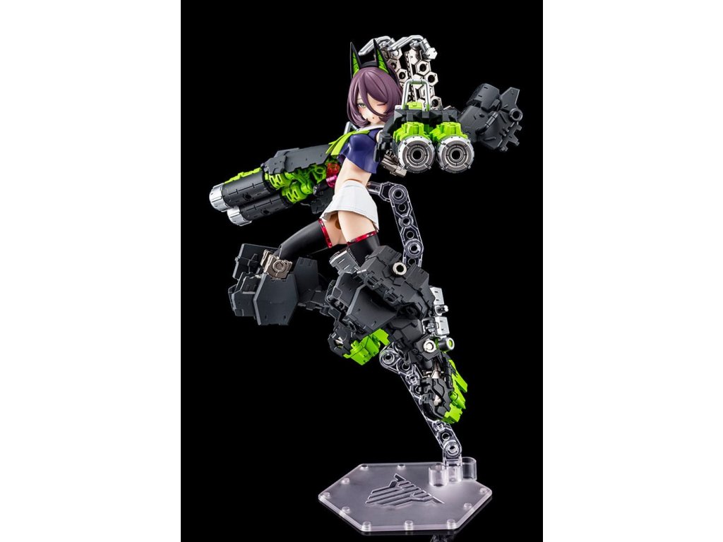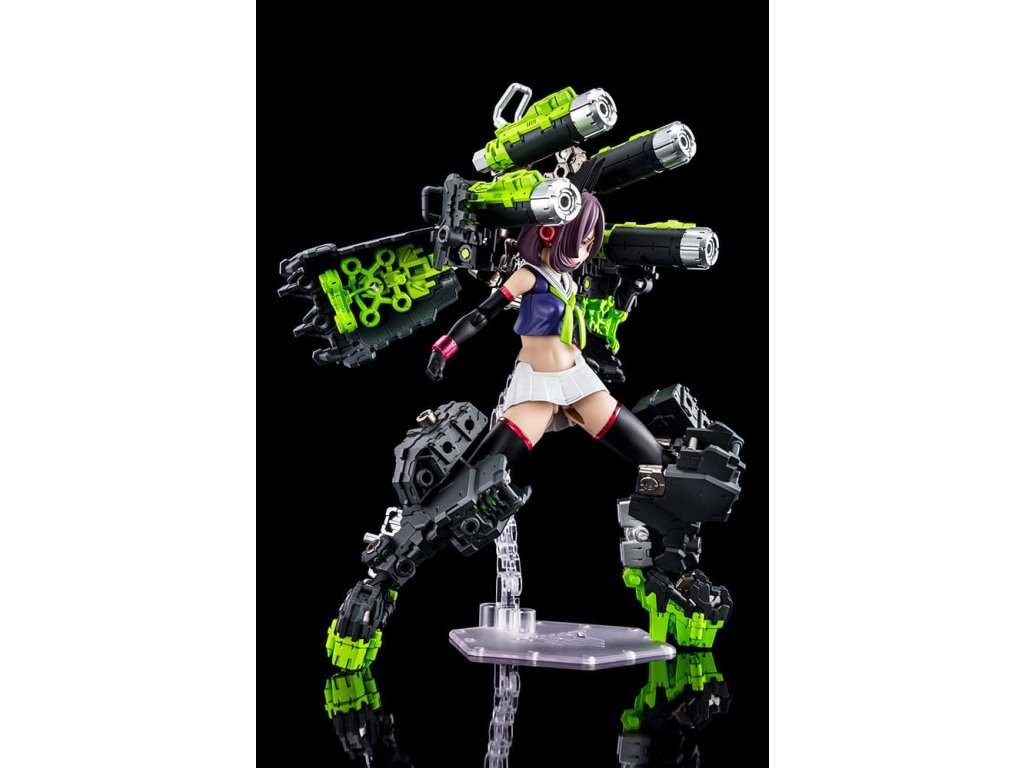 A Megami Device műanyag készletsorozathoz, amely a Bishoujo stílusú szépségeket és a nehéz fegyvereket és páncélzatot ötvözi, egy új fő testsorozat csatlakozik! Az újonnan bevezetett Machinika Block2-M sorozat harmadik modellje a BUSTER DOLL TANK! A Masaki Apsy által készített Machinika Block2-M egy teljesen újratervezett karosszéria, amely teljes szerkezeti átalakításon esett át. Minden egyes alkatrészt az alapoktól kezdve újragondoltak és úgy fejlesztettek ki, hogy a cserélhető alkatrészekkel könnyen összeszerelhető és bővíthető legyen. Az arányokat is frissítették, hogy még szebb kontúrokat hozzanak létre, ami kellemes meglepetés mindenkinek, aki korábban már vásárolt Megami Device-t. A Buster Doll Tank új főtestet kapott, a koncepciót a Megami Device producere, Toriwo Toriyama alkotta meg, a mechanikai tervezést pedig Task végezte, így ez az eddigi legszisztematikusabb Megami Device. Parsley illusztrátor, aki gyönyörű, a közönséget magával ragadó grafikáiról ismert, a karakterek tervezésével foglalkozott, és egyedi színt vitt a sorozatba. Tedd gyűjteményedbe a Buster Doll Tankot, és fedezd fel a legújabb frissítéseket és a kiaknázatlan lehetőségeket! A modell specifikációi: - Az újonnan tervezett Machinika Block2-M testet a könnyű építhetőség és a szépség érdekében alkották meg - A modell többrétegű páncélzattal, valamint számos ízülettel és csapokkal rendelkezik a további bővítéshez - A csomagban a tengerészgyalogos egyenruhán alapuló jelmezalkatrészek, valamint az alapmodell mellkas- és derékrészletei találhatók a változatlan főtest megépítéséhez. - Tartalmaz három alkatrészt előre festett arcokkal és részletek nélküli arcrészekkel - Az alkatrészek úgy konfigurálhatók, hogy a modell teljes páncélzatban jelenjen meg a "fegyveres üzemmódban" vagy páncélzat nélkül a "fegyvertelen üzemmódban" - Mindhárom kar műanyagból készült. A fegyvert tartó kéz úgy van kialakítva, hogy kerek és szögletes markolatot is tarthasson, és egyszerűen behelyezésével fegyvert is tarthat - Egy újonnan tervezett alapot tartalmaz a stabilabb megjelenítés érdekében - Az egyes részeken található 3 mm-es csatlakozási pontok és a fejkompatibilis alkatrészek lehetővé teszik, hogy ez a modell az M.S.G, Frame Arms, Frame Arms Girl, Hexa Gear, Sousai Shojo Teien és Arcanadea sorozat meglévő részeihez igazítható legyen.Kiegészítő paraméterek