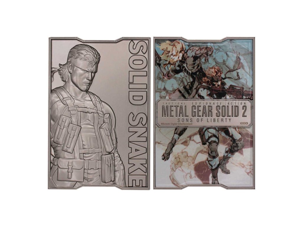A Metal Gear Solid 2-ben a legendás MGS-katona, Solid Snake háttérbe szorul az újonc Raiden mögött, de azért ott van, hogy segítsen. Ez a limitált példányszámú acéllemez fémrúdra van nyomtatva, és egy állvánnyal érkezik a bemutatáshoz egy prezentációban, és egyedileg számozott, mint az 5000-ből egy - Hivatalos licenc - 5000 darabra limitált - Egyedileg számozott - Méret 90 x 60,5 mm.Kiegészítő paraméterek