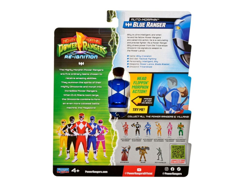 Az Auto-Morphin Blue Ranger a jellegzetes Power Lance és Blade Blaster pengés és pengés formában! A figura többszörösen artikulált, és pontosan úgy néz ki, mint Billy Cranston az eredeti Mighty Morphin Power Rangers sorozatból!Kiegészítő paraméterek