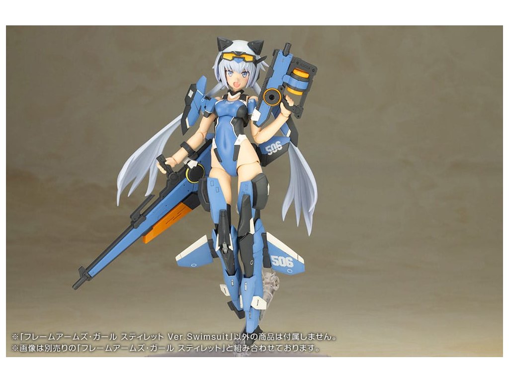 Bemutatjuk a vadonatúj Stylet fürdőruha stílust! Ez a szett a Kotobukiya eredeti Frame Arms Girl sorozatában szereplő Stylet variációja egy vadonatúj fürdőruhában. Ez a modell Humikane Shimada Bishoujo stílusú karakterillusztrációján alapul a Takayuki Yanase által tervezett Frame Armsból! A modell specifikációi: - Három vadonatúj, előre festett arcrészt tartalmaz. A szemlenyomatok is javultak - A fürdőruha magasan kivágott aerodinamikus kialakítású, és új felszereléseket tartalmaz, mint például több szárnykészletet a test körül és új fejfedőt - A folyékony lőszerhez való intelligens fegyver egyes részei újonnan lettek megformázva. - Egy új géppisztolyt is tartalmaz - A könyökök kétszeresen íveltek, ami jobb mozgástartományt tesz lehetővé - A páncélozott lábak és az eredeti Stylet (külön megvásárolható) egyéb részei kompatibilisek a könnyű átalakítás érdekében - Az új frufru az új fejfedővel vagy anélkül is használható. - Ezen kívül a készlet az újonnan megformált fekete mecha macskafülek mellett számos, az Innocentia-hoz tartozó tárgyat is tartalmaz, mint például macskafüleket, mecha macskafüleket, mecha rókafüleket, mecha kutyafüleket, mecha aranyos kutyafüleket és mecha kiegészítőket - Öt új PVC kéz jár a készlethez, gömbcsuklókkal minden kézhez - A hátsó motor átdolgozható harcos módba. - Tartalmazza a szemekhez és egyéb jelölésekhez szükséges matricákat - A PVC karok kompatibilisek más sorozatok meglévő karjaival, beleértve az M.S.G és a Frame Arms karjait is - A combuszonyok 3 mm-es csatlakozó csuklót használnak, és más, meglévő sorozatokból származó alkatrészek is csatlakoztathatók, beleértve az M.S.G és a Frame Arms karjait is - Az okosfegyverhez és a hónaljhoz 3 mm-es csatlakozó alkatrészek is csatlakoztathatók. Mi az a Frame Arms Girl? A Frame Arms Girl a Kotobukiya eredeti Frame Arms építő sorozatának spin-offja, amely minden mechához egy bishoujo stílusú karaktert hoz létre. A készletek többszínű alkatrészekkel és előre nyomtatott tamponrajzzal ellátott arcrészekkel érkeznek, így könnyen összeszerelhetőek festés nélkül. A Frame Arms jellegzetes 3 mm-es ízületeivel és PVC kezeivel kifejlesztett Frame Arms Girl modellek számos alkatrésszel kombinálhatók olyan sorozatokból, mint az M.S.G (Modeling Support Goods), Frame Arms és még sok más! A sorozat legújabb fej-, kar- és lábmodelljei teljesen kompatibilisek egymással, így a felhasználók megalkothatják saját egyedi Frame Arms Girl modelljüket!