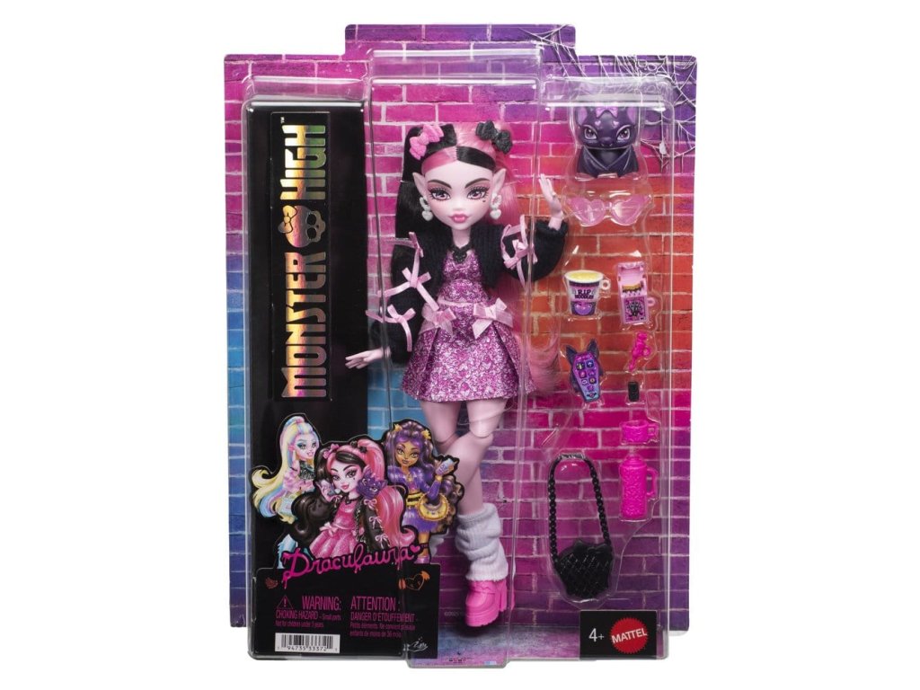 Goosebumps alert: ennek a Monster High babának a stílusa egyszerűen vámpírszerűen félelmetes! A Draculaura baba abszolút aranyosan néz ki masnis ruhájában, és hét kiegészítővel van ellátva. Hűséges társa Félelmetes Gróf, aki mindig készen áll a félelmetes, harapós kalandokra! A 4 éves és annál idősebb gyerekek imádni fogják a Monster High szobáiban kísértőzni ezzel a mozgó Draculaura babával. Teljesen mozgatható. A baba nem tud egyedül állni. A színek és a minták változhatnak.Kiegészítő paraméterek