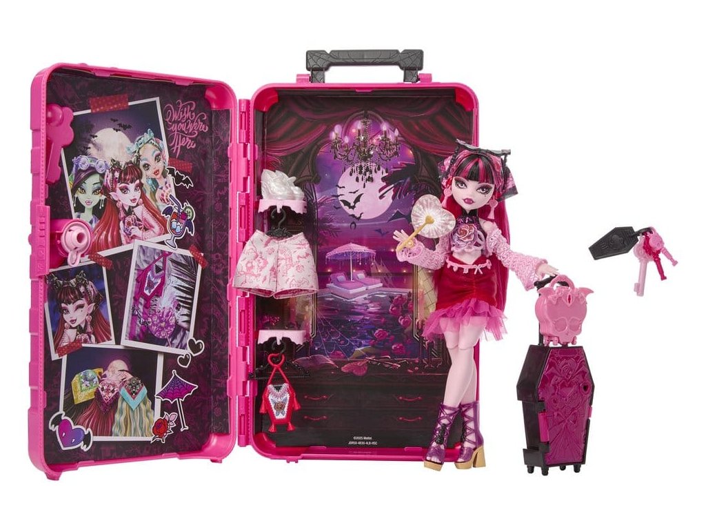 Fedezd fel a Monster High babát kiegészítőkkel együtt, és indulj el egy utazásra a Skulltimate Secrets, Úti cél: az elvarázsolt oázis! Ez a kísértetiesen gyönyörű készlet egy ijesztően álomszerű vakációra viszi el a gyerekeket. A készlet több mint 19 meglepetést tartalmaz. De előbb meg kell találni a három különálló kulcsot, hogy felfedezd az utazási témájú ruhákat és kiegészítőket! Minden elem külön-külön kapható. Egyes elemek nem minden országban kaphatók. Teljesen mozgatható. A babák nem állnak önmagukban. A színek és minták eltérhetnek.Kiegészítő paraméterek