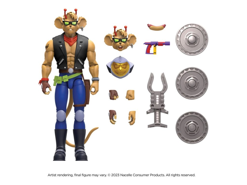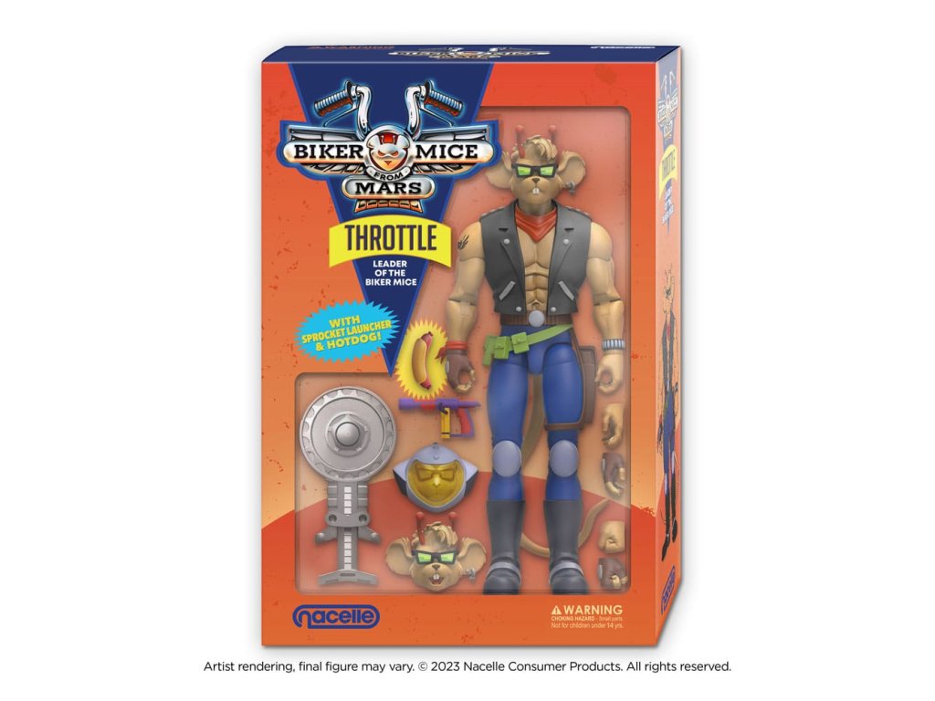 Indítsd be a motorokat, és készülj fel a motorozásra a Biker Mice From Mars - Throttle című rajzfilm rettenthetetlen vezetőjével! Throttle megbízható huzatos söprűjével készen áll, hogy szembeszálljon a Limburger gonosz erőivel, és győzelemre vezesse csapatát. A valamivel több mint 7 hüvelyk magas, teljesen csuklós Throttle akciófigura a klasszikus animációs sorozat minden igazi rajongójának kötelező darab. Így akár felfrissíted a gyerekkori emlékeidet, akár először fedezed fel a Biker Mice-t, ez a Throttle akciófigura biztosan lenyűgöző kiegészítője lesz a gyűjteményednek.Termékjellemzők:- Mérete 18,08 cm (7,12 hüvelyk)- 22 ponton csuklós- Mesterien festett- Gyűjteményes dobozban csomagolvaTartalom:- Throttle akciófigura- 2 cserélhető fej - az egyik sisakkal! 2 készlet cserélhető kézzel- Óraműves kiegészítő- 3 grommets- Blaster- Hot-dogKiegészítő paraméterek