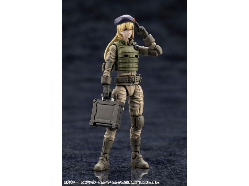"Virginia Earthcline, a történet hősnője és a harmadik generációs ZOATEX HEXA GEAR-t kifejlesztő Earthcline Biomechanics vezetője végre megkapta saját, 1/24-es méretarányú modelljét, melyben a Kotobukiya minden tapasztalata és technológiája felhasználásra került! A készlet két nagymértékben csuklós testet tartalmaz, egyet egyenruhában, egyet pedig tesztruhában. A modell specifikációi: - Egyenruhás test: kb. 70 mm magas és 27 ponton mozgatható - Tesztruha test: kb. 70 mm magas és 29 ponton mozgatható - Három fejet és három szemmatricát tartalmaz, amelyek előre, balra és jobbra néznek - A csuklók 2 mm-es gömbcsuklót használnak, hogy a kézpózok kifejezőbbek legyenek - A mellékelt tabletet egy speciális kézfejjel lehet tartani. - A készlet tartalmaz egy speciális kis repülő alapot, amely használat közben stabil megjelenítést tesz lehetővé - A készlethez tartozik egy derék ülőelem is, amely lehetővé teszi olyan jelenetek újrateremtését, mint például az Operátor lovaglása a HEXA GEAR-on vagy egy asztalon/széken ülése a HEXA GEAR BLOCK BASE 01 DX FEJKARTEREK - A tesztruhában lévő test fején lévő haj csuklós, amely dinamikusabb pózolást tesz lehetővé. Ezen kívül van egy további darab, amely a derékhoz rögzíthető, mint alap a beállításokhoz. Tartalmazza a következőket: - 1 x Egyenruhamodell - 1 x Tesztruha modell - 1 x Csupasz fej - 1 x Fej barettel - 1 x Fej fejhallgatóval - 1 x Lap szemmatricákkal - 1 x A tesztruha derékra rögzíthető része - 1 x Ülőszoknya része - 1 x Tabletta. 1 x PVC kézalkatrészek az egyenruhában a tablethez - 1 x 6 féle PVC kézalkatrész az egyenruhában (mindkettő balra és jobbra) - 1 x PVC kézalkatrészek a tesztruhában a tablethez - 1 x 6 féle PVC kézalkatrész a tesztruhában (mindkettő balra és jobbra) - 2 x Kis repülő alap.Kiegészítő paraméterek