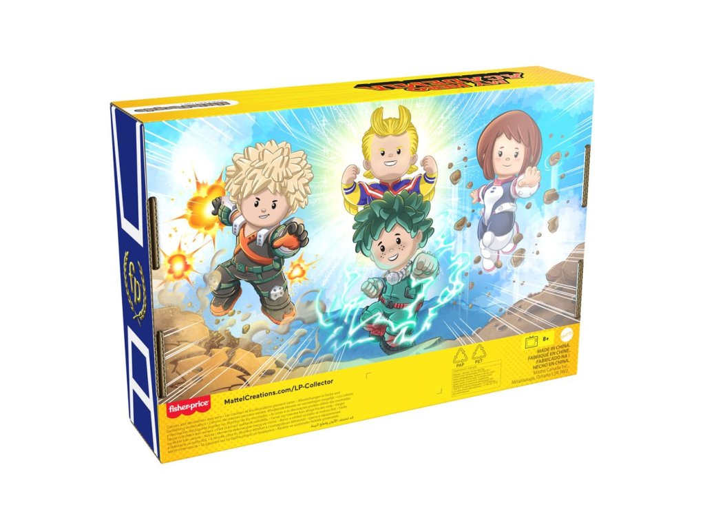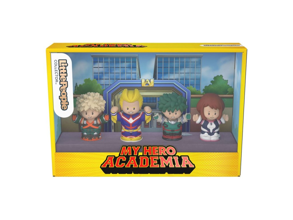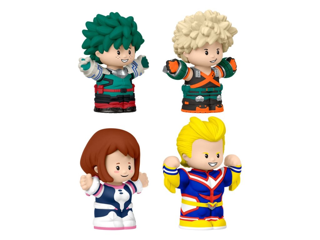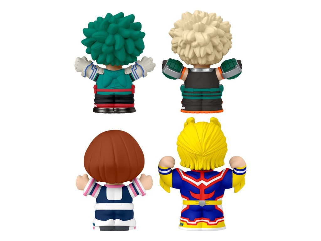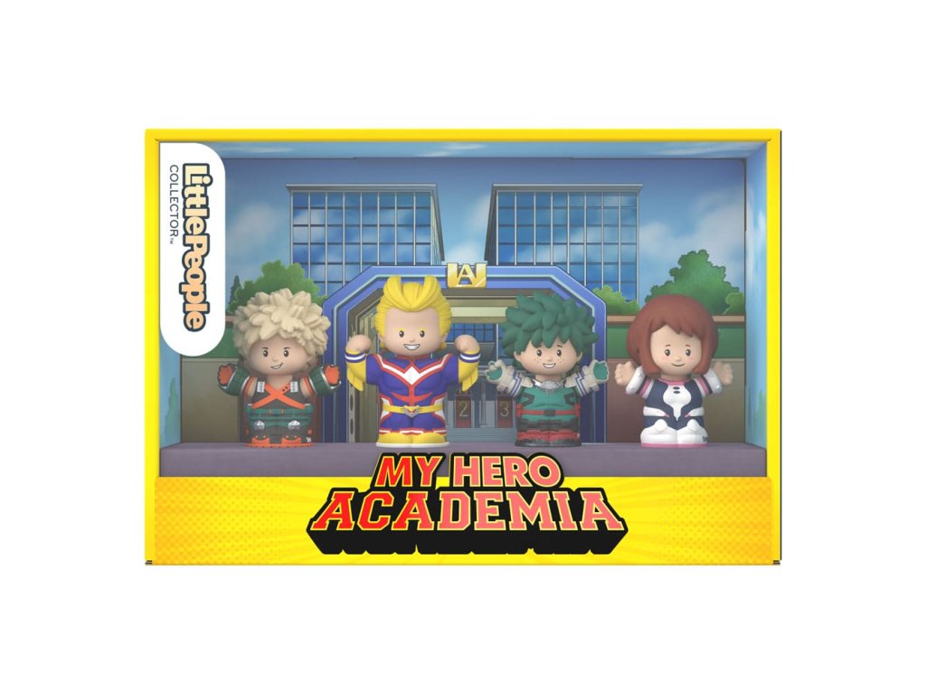 A Fisher-Price "Little People Collector" termékcsaládjából érkezik ez a mini figurákból álló multipack. Körülbelül 7 cm magasak, és egy ablakkal ellátott dobozban vannak csomagolva. A csomag a következőket tartalmazza: All Might, Izuku Midoriya, Katsuki Bakugo, Ochaco Uraraka.Kiegészítő paraméterek
