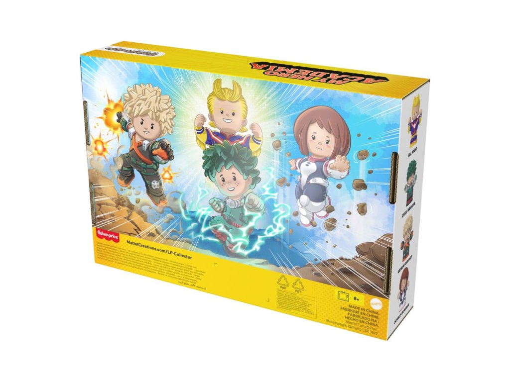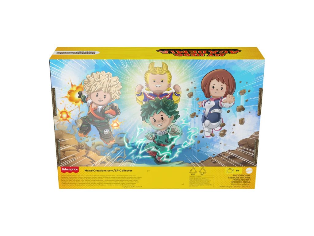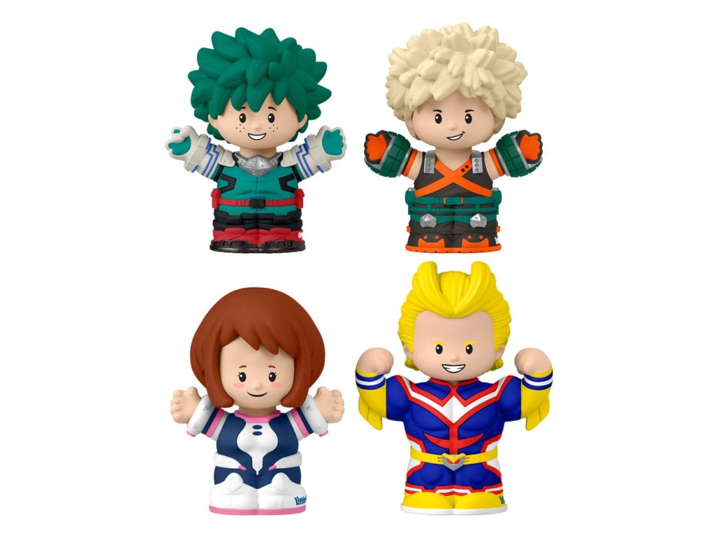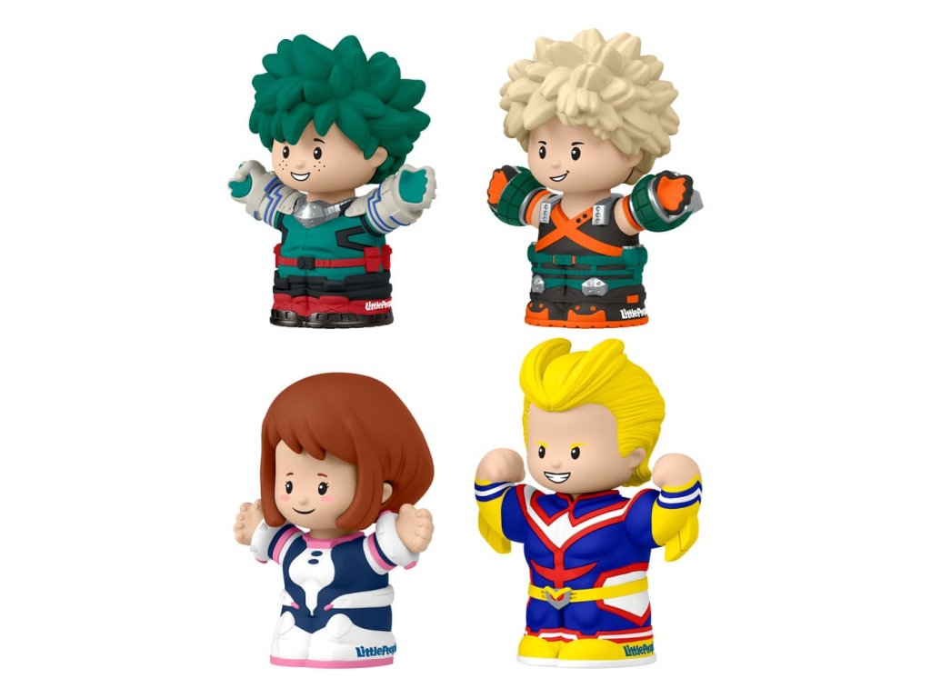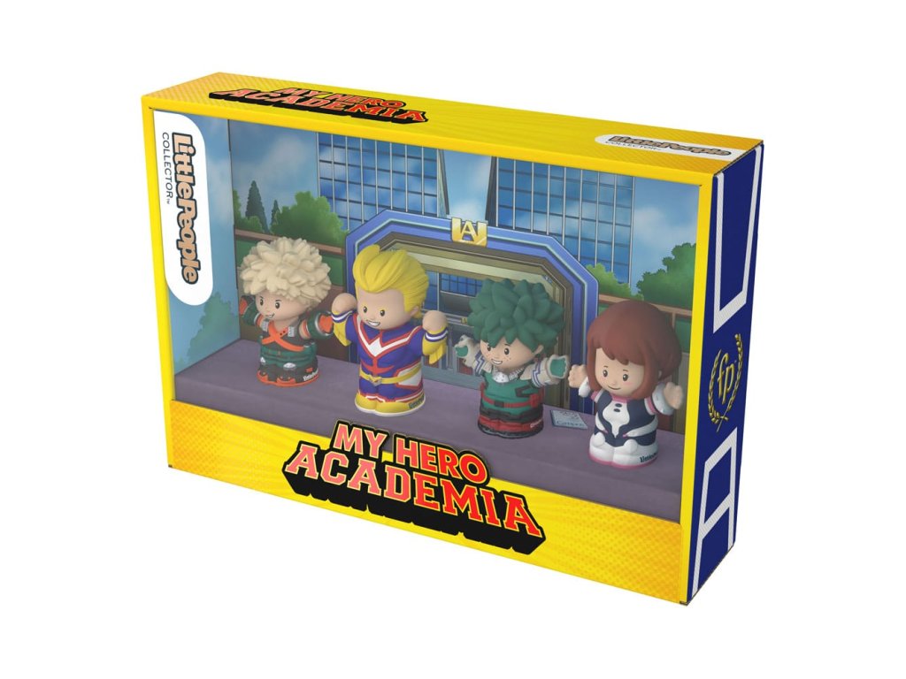 A Fisher-Price "Little People Collector" termékcsaládjából érkezik ez a mini figurákból álló multipack. Körülbelül 7 cm magasak, és egy ablakkal ellátott dobozban vannak csomagolva. A csomag a következőket tartalmazza: All Might, Izuku Midoriya, Katsuki Bakugo, Ochaco Uraraka.Kiegészítő paraméterek