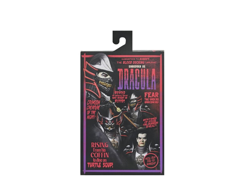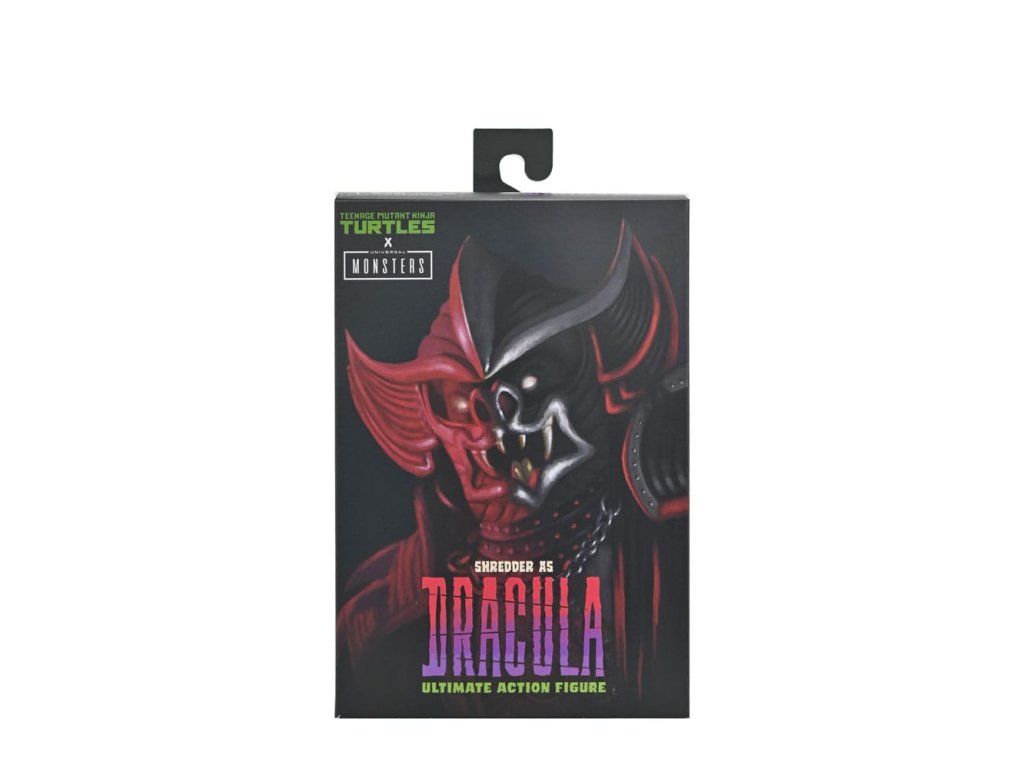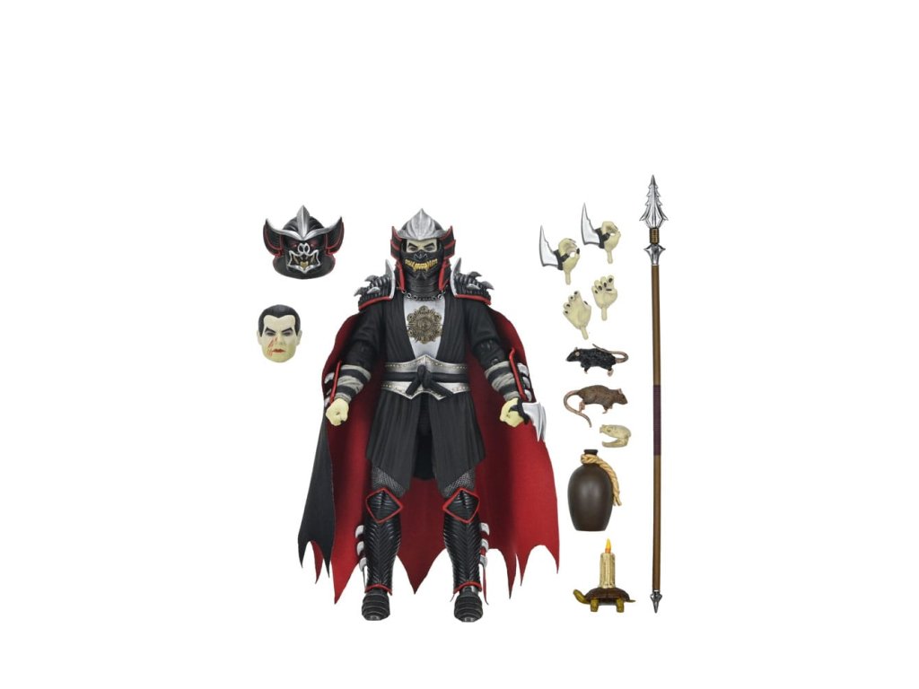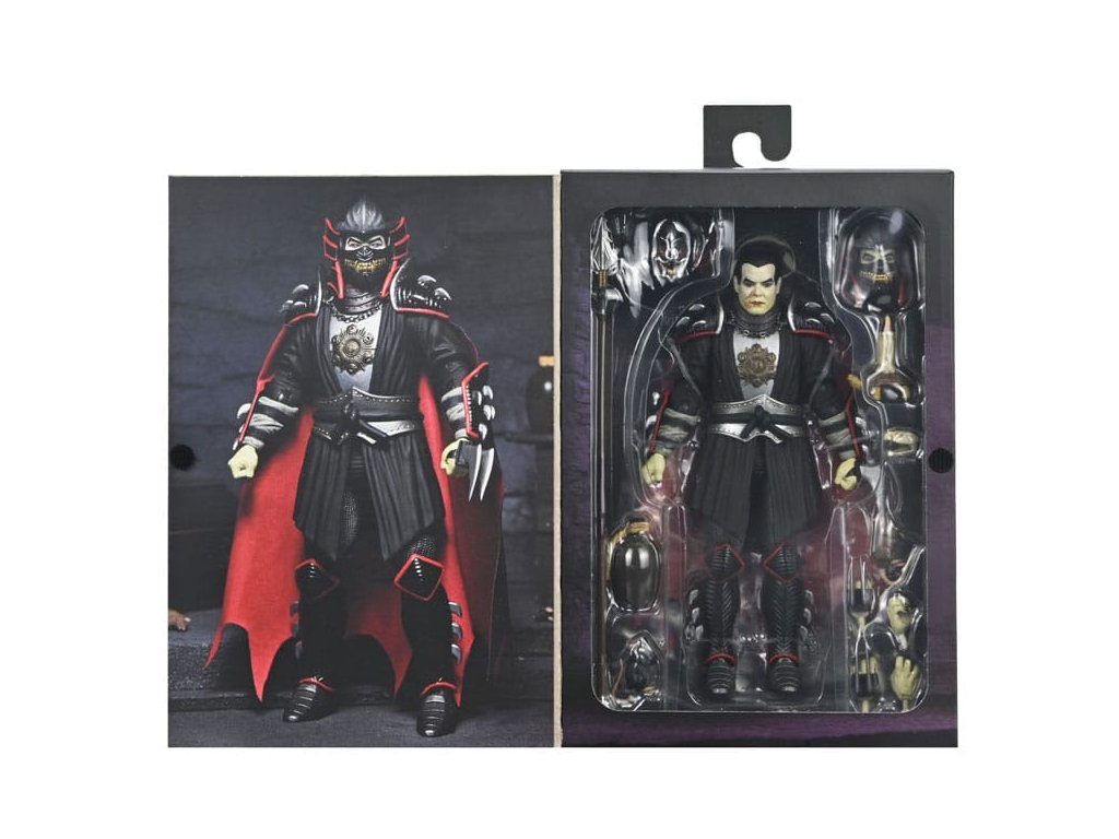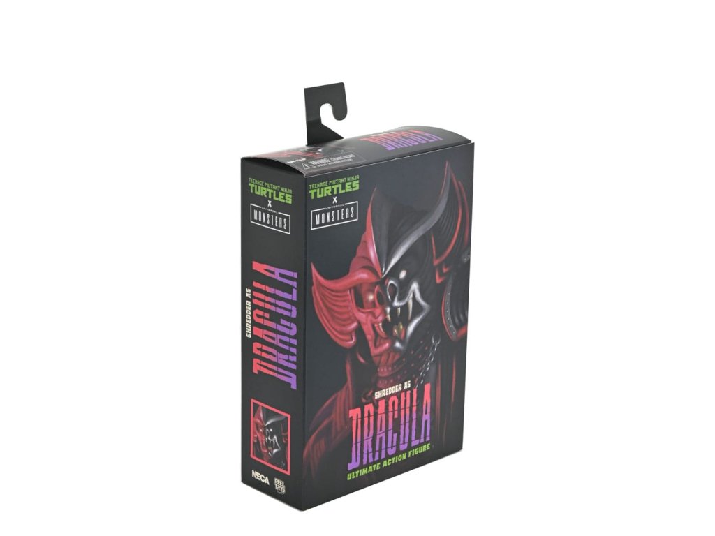 A NECA bemutatja a Universal Monsters x Ninjas in Action akciófigura sorozat következő kiadását, amely a világ legikonikusabb teknősei és az Universal terror ikonjai előtt tiszteleg! A popkultúra két legijesztőbb gonosztevője összeállt egy elképesztő figuráért, amelyben Shredder Drakula bőrébe bújik. A James Groman által tervezett, klasszikus színpalettával (mert még a gonosztevőknek is kell egy szép ruhatár) ellátott, 7 hüvelykes méretarányú figura három különböző fejjel, valódi szövetköpennyel, teknős koponyával, teknős alakú gyertyával, lándzsával, gyümölcslé kancsóval és döglött patkányokkal érkezik. A legendás művész, Daniel Horne által tervezett gyűjtőbarát ablakdobozban érkezik.Kiegészítő paraméterek