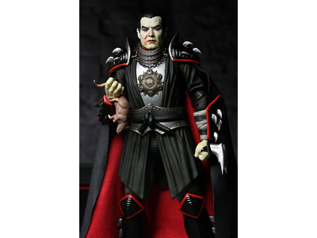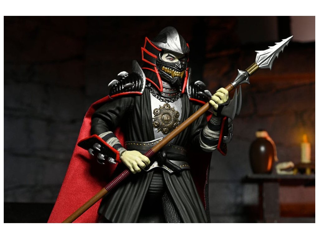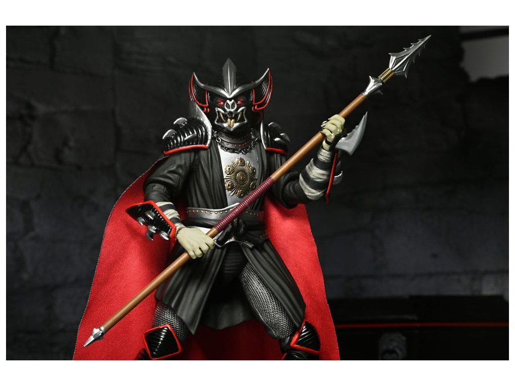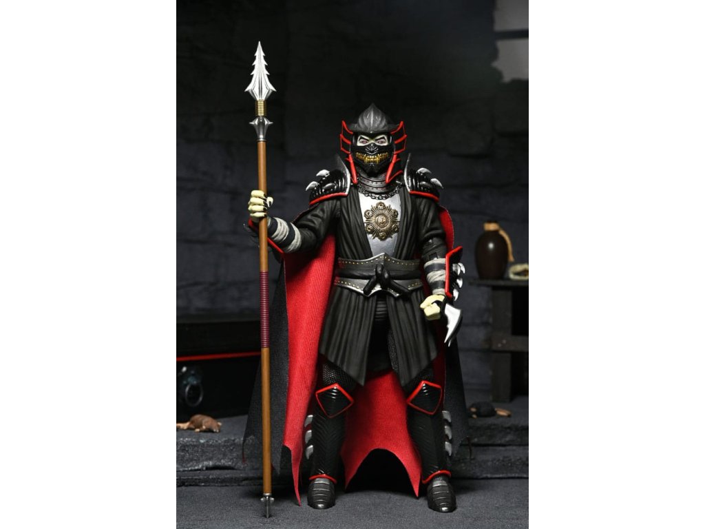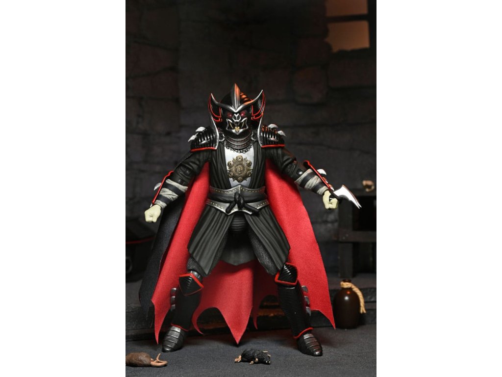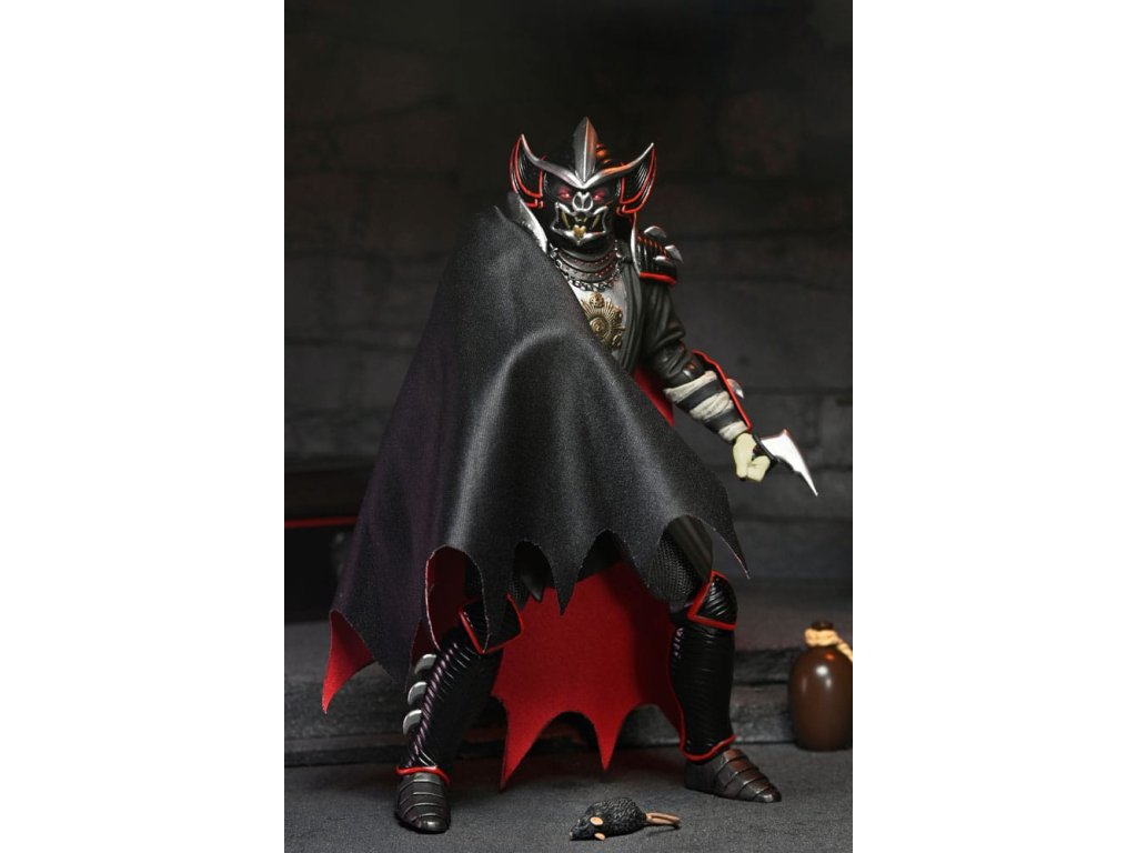A NECA bemutatja a Universal Monsters x Ninjas in Action akciófigura sorozat következő kiadását, amely a világ legikonikusabb teknősei és az Universal terror ikonjai előtt tiszteleg! A popkultúra két legijesztőbb gonosztevője összeállt egy elképesztő figuráért, amelyben Shredder Drakula bőrébe bújik. A James Groman által tervezett, klasszikus színpalettával (mert még a gonosztevőknek is kell egy szép ruhatár) ellátott, 7 hüvelykes méretarányú figura három különböző fejjel, valódi szövetköpennyel, teknős koponyával, teknős alakú gyertyával, lándzsával, gyümölcslé kancsóval és döglött patkányokkal érkezik. A legendás művész, Daniel Horne által tervezett gyűjtőbarát ablakdobozban érkezik.Kiegészítő paraméterek