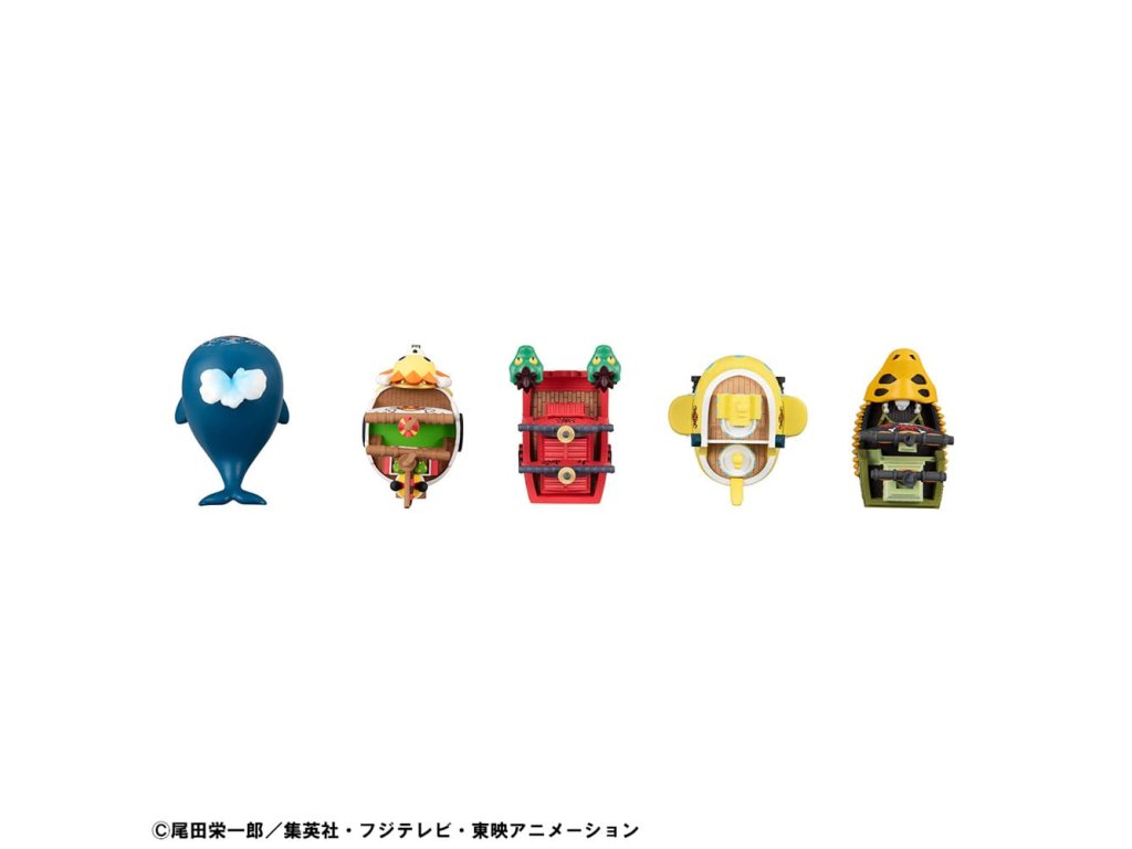 Öt darab Yuracolle sorozatú figura a One Piece Grand Line Vol. 2-ből, 6 cm magasak.