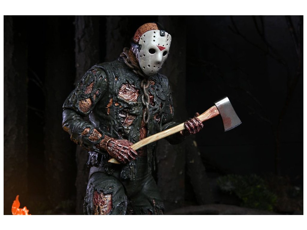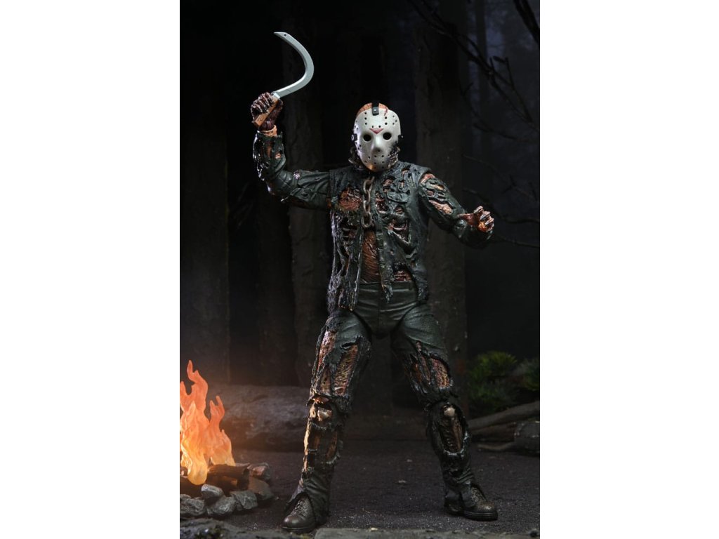 A Péntek 13. filmsorozatból örömmel jelentjük be, hogy ismét kapható lesz a 7. részben szereplő Jason végleges gyűjtői változata. Ez a csuklós 7"-os akciófigura két cserélhető fejjel és rengeteg kiegészítővel rendelkezik. Ablakos csomagolásban érkezik.