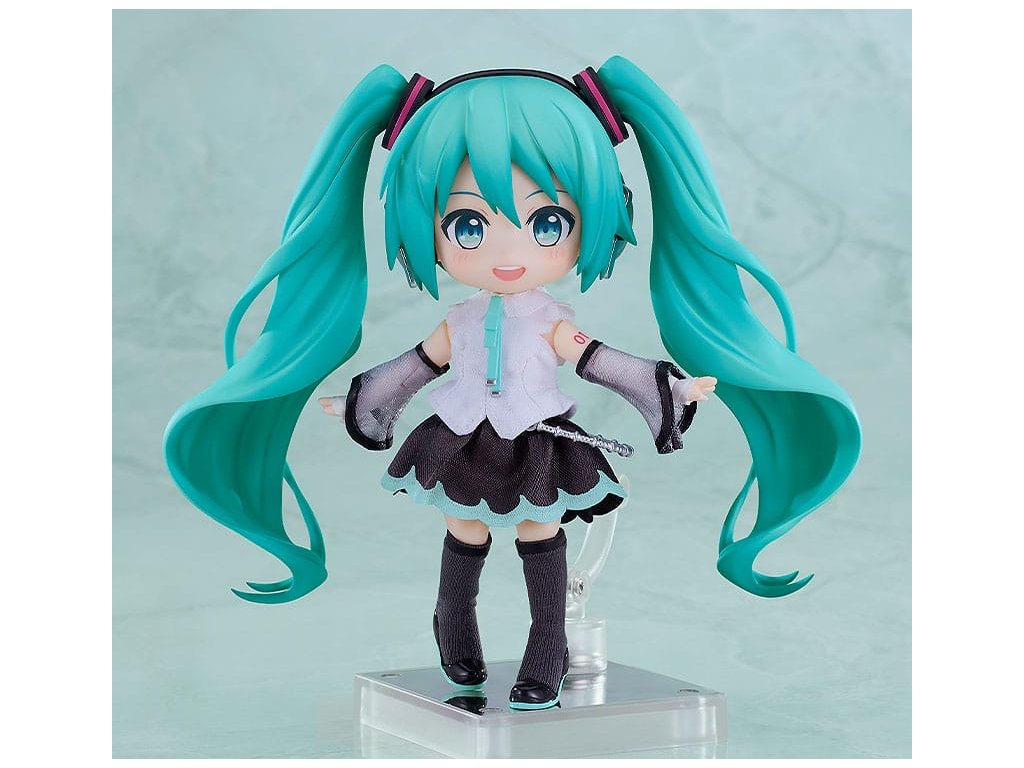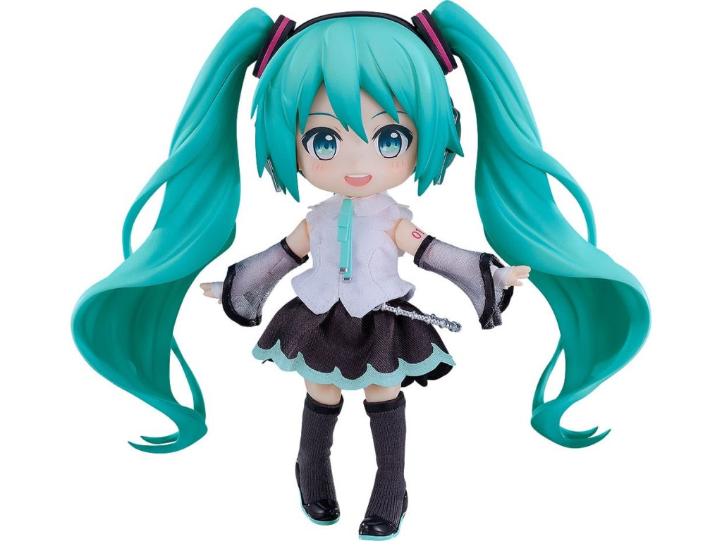 A 'Piapro Characters' Nendoroid Doll Hatsune Miku NT! A Nendoroid Doll tenyérnyi akciófigura sorozat ugyanazokkal a fejekkel rendelkezik, mint a standard Nendoroidok, de alternatív babatestekkel, amelyek nagymértékben csuklósak és könnyen felöltöztethetők különböző ruhákba! A kétrészes, terjedelmes hajstílusát Nendoroid Doll formájában is hűen megörökítették. Mindenképpen vedd fel őt a gyűjteményedbe!* Ennek a Nendoroid babának a bőrszíne egy különleges szín, amely megegyezik az eredeti karakterével. A készlet tartalmazza:- Figurát- Felsőt- Szoknyát- Hüvelytakarót- Magas csizmát (mágnessel a talpban)- Alsóneműt- Cserélhető kézrészeket- Mágneses alapot (a mágneses talphoz)*A törzs állványt nem tartalmazza.