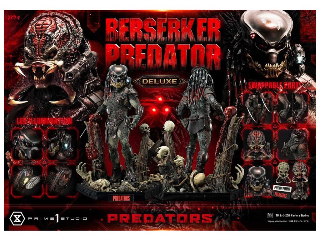 A Prime 1 Studio büszkén mutatja be a grandiózus Predator család következő tagját, a Museum Masterline sorozathoz csatlakozó 1/3 méretű MMPR-03DX: Berserker Predator Deluxe változatot a 2010-es Predators filmből. A Predator, más néven Yautja, egy könyörtelen, de végső soron becsületes faj, vérszomjas csillagközi vadászok, akiket saját erkölcsi kódexük köt. A Predator Berserker azonban nem érzi szükségét, hogy ilyen kódexhez kösse magát. Yautja szuperragadozó volt, és a hozzá hasonló szuperragadozók triójának klánvezetője. Ők a vadászat izgalmáért vitték zsákmányukat az idegen Vadászbolygóra. Nemcsak trófeagyűjtésből és sportból vadásztak, ez a halálosztókból álló szklerotikus banda pszichésen is kínozta a zsákmányukat. A Berserker szobor büszkén büszkélkedhet 100 cm-es magasságával, a Prime 1 Studio tehetséges művészei keményen dolgoztak, hogy ez a gyilkos parancsnok nagyszerűen nézzen ki polystone szobor formájában. A Berserker cserélhető részletekkel rendelkezik, mint például a valódi arcát felfedő fej, vagy a jobb kar nyitott tenyérrel vagy egy emberi gerincet tartó kar. Kapsz egy koponyaállványt is, amellyel Yautja koponyáját ki tudod állítani. Ezt a félelmetes végső főnököt hódításainak roncsai veszik körül. A szobor tövében emberi koponyákat, főemlősök és még Yautja koponyáit is megtalálod. Valójában egy gyilkos mező ez a vadászbolygó. Ha van Predator-gyűjteményed, vagy fontolgatod, nincs is jobb darab, amit előrendelhetnél, mint ezt a csodálatos példányt. Siess, amíg még kapható! A termék műszaki adatai: - A szobor mérete körülbelül 39 hüvelyk [H: 100cm W: 72cm D: 70cm] - Téma: Planet Hunt - Két cserélhető fej - Három cserélhető jobb kézfej - Egy (2) cserélhető csuklós pengehely pozíció (behúzott vagy kinyújtott) - Két cserélhető bal kézfej - Két felirat - Csuklós panel csuklós fedéllel - LED világítás a sisakon, a sisaklézeren, a csuklós panelen és a váll plazmaágyún. A termék mérete miatt a szállítási felárak eltérőek lehetnek. Ennek a költségnek a meghatározásához az Ön tartózkodási helye mellett a csomag tényleges méretét és súlyát is meg kell határoznia. Mindkettő jelenleg nem ismert, és lehet, hogy nem lesz elérhető, amíg a termék meg nem érkezik a raktárunkba.Kiegészítő paraméterek