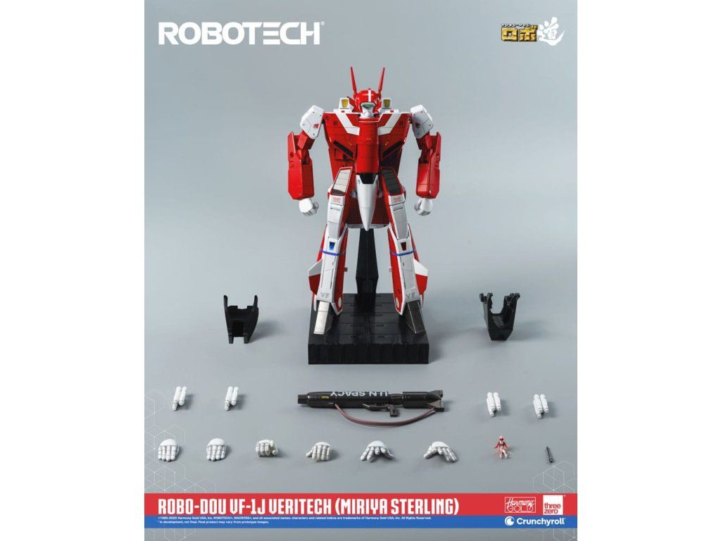 A threezero büszkén mutatja be a ROBO-DOU ROBOTECH VF-1J-t a Veritech-től (Miriya Sterling)! A ROBOTECH egy 1985-ben az amerikai televízió számára adaptált animációs sci-fi sorozat, amely összefüggő történeteket mutat be a háború közepette zajló szerelemről. Miriya Sterling volt a zentraedik legmarkánsabb harcosa, aki számos küldetést vezetett az emberi erők ellen, amíg emberi alakot nem öltött, hogy beszivárogjon az SDF-1-be. A Max Sterlinggel való többszöri összecsapás után Miriya bosszút akart állni az ászpilótán, hogy végül beleszeressen a férfiba. A vörös VF-1J Veritech ászpilótájaként Miriya a háború alatt Max oldalán áll, és segít újjáépíteni a Földet a Dolz flottája által hátrahagyott hamvakból.A ROBO-DOU ROBOTECH VF-1J Veritech (Miriya Sterling) jellegzetes vörös színével egy rendkívül hűséges gyűjtői figura, amelyet úgy terveztek, hogy az eredeti anime televíziós sorozatban látott megjelenését a részletekre nagy figyelmet fordítva örökítse meg. A ROBO-DOU ROBOTECH figurákat gondosan terveztük a híres mérnöki munkánkkal, hogy ugyanazt az ultraszilárd vázat mutassák be, amelyről a threezero ismert, biztosítva a szerkezeti integritást, a stabil pózolási élményt és a jellegzetes festésünket.A Veritech ROBOTECH VF-1J ROBO-DOU ROBOTECH (Miriya Sterling) körülbelül 20,3 cm (8") magas Battloid konfigurációban, és teljesen átalakítható a Fighter, Guardian és Battloid módok között. A belső magnéziumötvözetből készült váz összesen 109 pontból álló, lenyűgöző mozgástartományt biztosító csuklót biztosít. A tartozékok közé tartozik egy GU-11 Gunpod pisztoly, négy rakétakészlet és négy pár cserélhető kéz.JELLEMZŐK - Körülbelül 20,3 cm (8") magas Battloid konfigurációban - Átalakítható a Fighter üzemmódok között, Guardian és Battloid - Speciális belső váztechnológia magnéziumötvözetből és szerkezeti műanyagból - Teljesen csuklós figura 109 csuklóponttal - Nagy pontosságú festés és díszítés a felületénFELSZERELÉS - Egy (1) nem artikulált festett pilótafigura - Egy (1) levehető antenna - Egy (1) GU-11 Gunpod - Egy (1) pár oldalsó üreg - Egy (1) pár hajtóműfedél - Négy (4) rakétakészlet - Négy (4) pár cserélhető kéz: Egy (1) pár szabad kéz, egy (1) pár nyitott kéz, egy (1) pár ököl, egy (1) pár kéz a Gun tartásához - Egy (1) akcióállvány - Egy (1) szerszám.Kiegészítő paraméterek