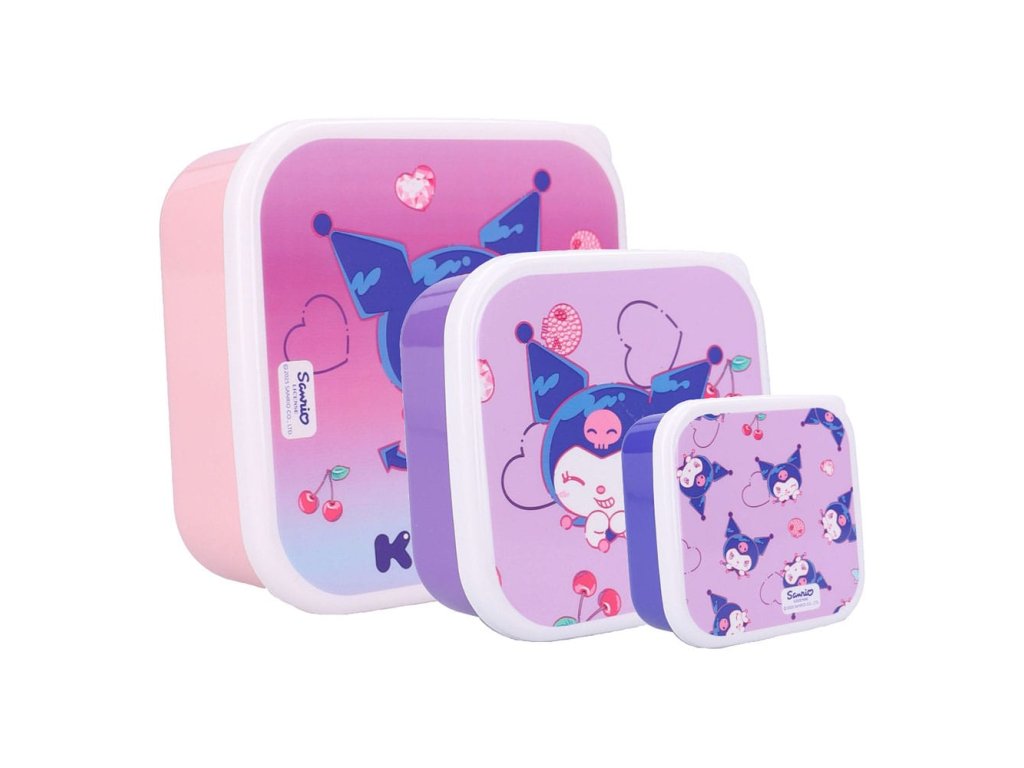 Ez az aranyos és színes, három "Kuromi" uzsonnás dobozból álló készlet nagyszerű a maradékok tárolására, vagy a kedvenc rágcsálnivalók munkába vagy iskolába szállítására. Kényelmesen egymásra helyezhetők, így több hely marad a konyhaszekrényben. Mikrohullámú sütőben vagy mosogatógépben való használatra nem alkalmasak. Csak kézzel mosható.Kiegészítő paraméterek