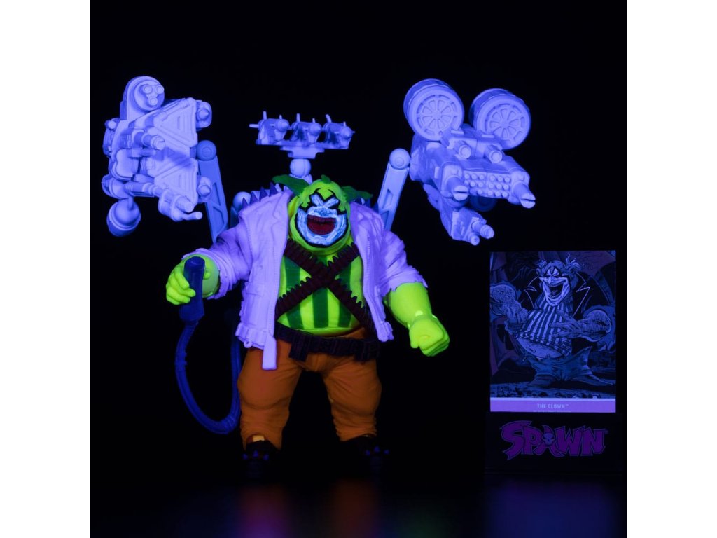 Clown, egy alacsony, elhízott, csúnya bohóc, rothadt fogakkal és egy kék M alakú jelekkel az arcán, Violator alteregója. Ezt a titkos identitást és emberi álruhát használja arra, hogy az emberek között járjon, és elkerülje a lebukást. Bár Violatornak megvan a képessége arra, hogy alakját bármivé változtassa, amivé csak akarja, annyira nem szereti az embereket, hogy azért öltözik át ebbe az ocsmány alakba, hogy kigúnyolja őket, mert undorítónak, nyomorultnak és gyengének tartja őket. Tod McFarlane kanadai művész által készített, rendkívül részletes 7"-es figura a Spawn képregénysorozatból. A Bohóc fekete fényvilágításban van ábrázolva. Clown hátizsákkal rendelkezik, rakétavetővel, késsel, borotvapengével, cserélhető kezekkel és fekete fénnyel ellátott, elemmel működő talppal. Tartalmaz egy gyűjthető művészeti kártyát a bázissal együtt. Korlátozott példányszámban, 3200 darab. Elemeket tartalmaz (6x LR44).