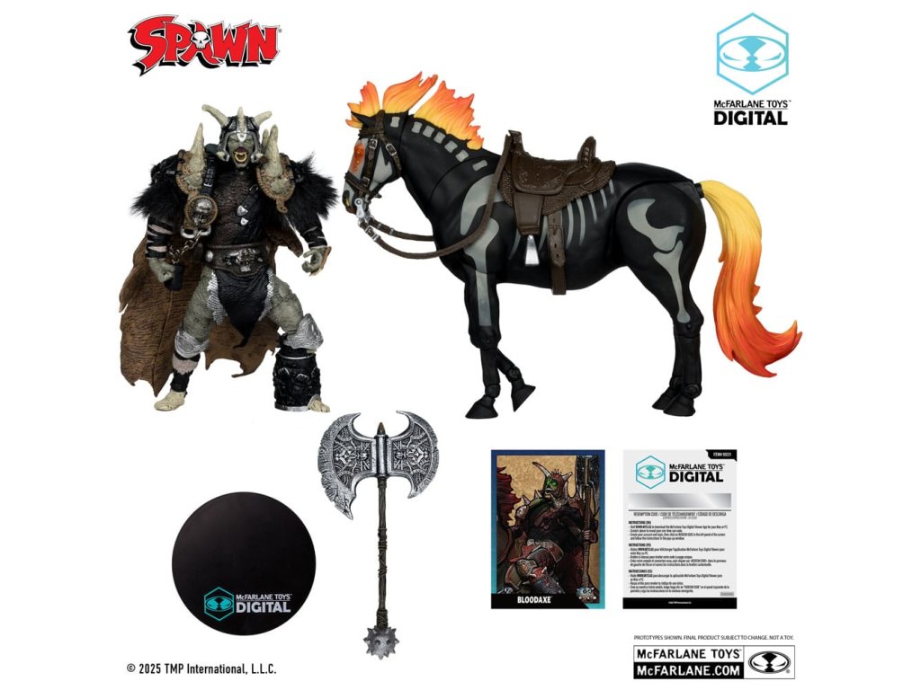 Spawnt, akit korábban Erik Bloodaxe néven ismertek, amikor még ember volt, a sötétség titokzatos erői alakították át. Termékjellemzők: - Hihetetlenül részletes, 7" méretű figura és ló TODD McFARLANE'S SPAWN™ képregényei alapján - Tartalmazza a DIGITAL McFARLANE TOYS™ gyűjtőfigurát - A csomag tartalmazza a 7" méretű figurát, lovat, fejszét és a bemutató alapot - SPAWN™ témájú csomagolásban - Gyűjtsd össze az összes McFARLANE TOYS™ SPAWN™ figurát.Kiegészítő paraméterek