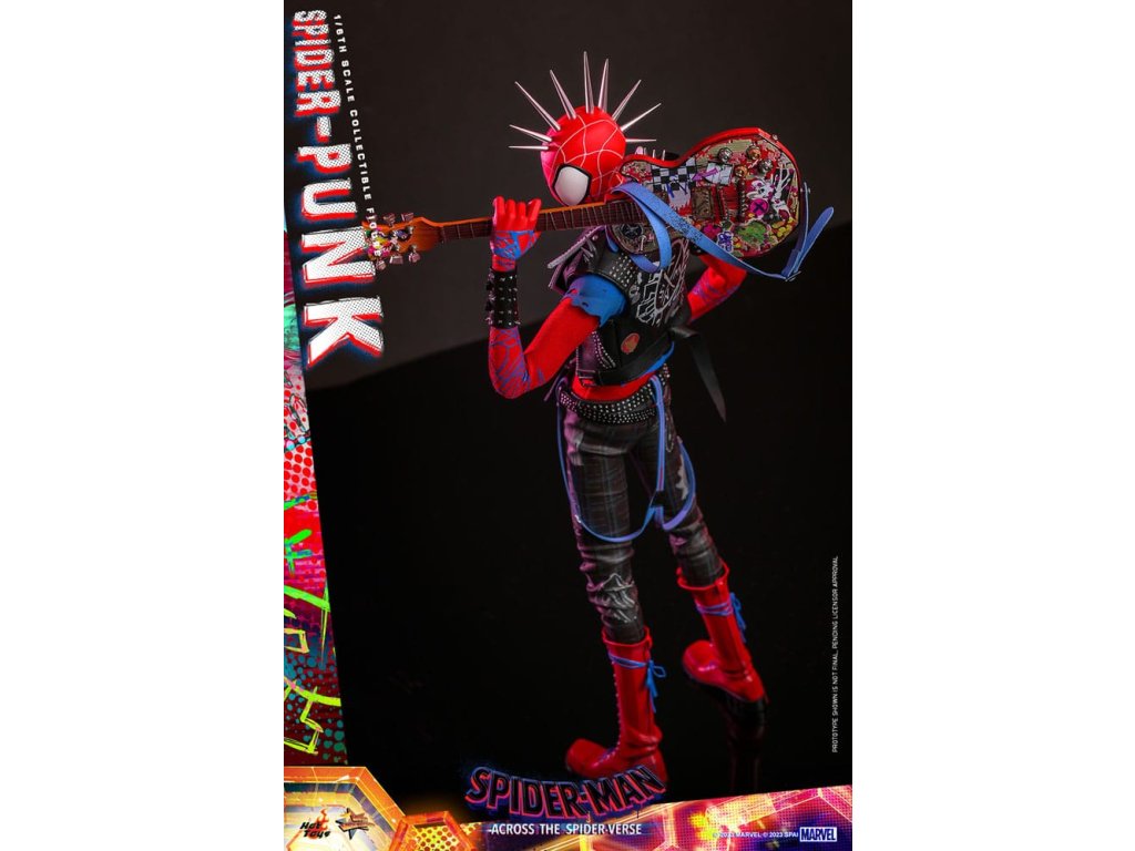 Hobie Brown egy brit punk Pókember, ismertebb nevén Spider-Punk. Egy olyan világból származik, amely az 1970-es és 1980-as évek Londonjának és a mai New Yorknak a bizarr keveréke. Hobie-t azért hívják be, hogy megakadályozza, hogy Spot még több bajt okozzon. Elektromos gitárral a kezében készen áll arra, hogy megmutassa ennek az univerzumnak egy egészen másfajta Pók-személyiséget! A Pókember: Into the Spider-Man Universe című film alapján a Hot Toys és a Sideshow büszkén mutatja be kedvenc Pók-Punkodat hatos méretű figurában, aki most készen áll, hogy rocker stílusában bővítse Pókember gyűjteményedet! A filmhű Pókember akciófigura egy újonnan tervezett fejjel rendelkezik, amely külön mozgó szemrendszerrel és ezüst tüskékkel álcázott fejjel rendelkezik, ami utánozza a jellegzetes kinézetét. Punkos öltözékét aprólékosan reprodukálták, formázott és szövetelemek kombinációjával egy lenyűgöző bemutatót alkotva, amely egy csuklós, mintás nadrágból, szabott ingből, drapériával ellátott szobor övből, gallérból, karkötőből és csizmából áll. A kiegészítők széles választéka, köztük egy punk mintás, részletesen kidolgozott gitár, egy gitáreffekt, egy dimenziós utazóeszköz, különböző webes kiegészítők, egy pop art stílusú tematikus háttér és egy dinamikus megjelenítő alap. Ne hagyd ki az esélyt, hogy a tiéd lehessen ez a Marvel által készített, nélkülözhetetlen Spider-Punk gyűjtői figura!Kiegészítő paraméterek